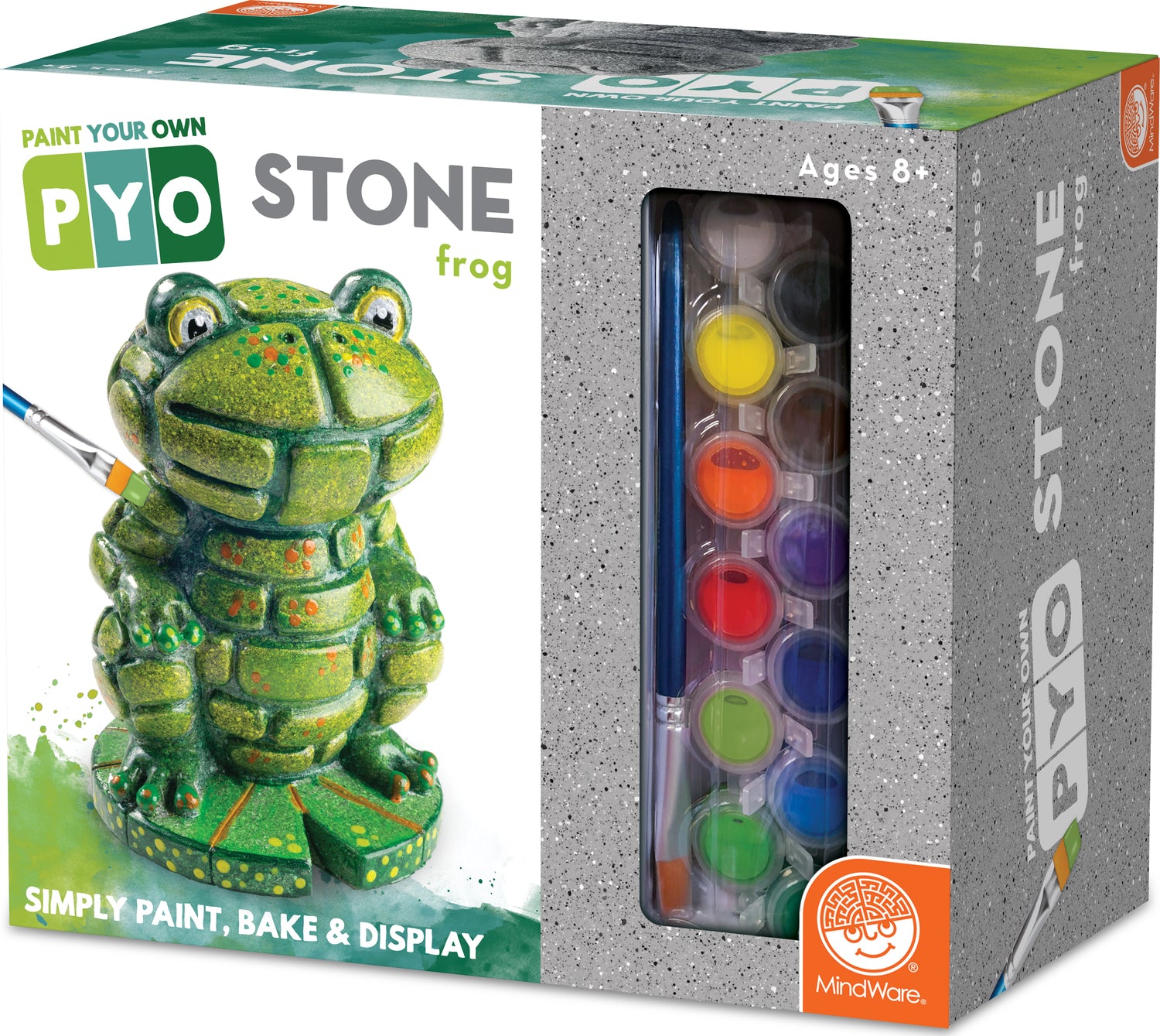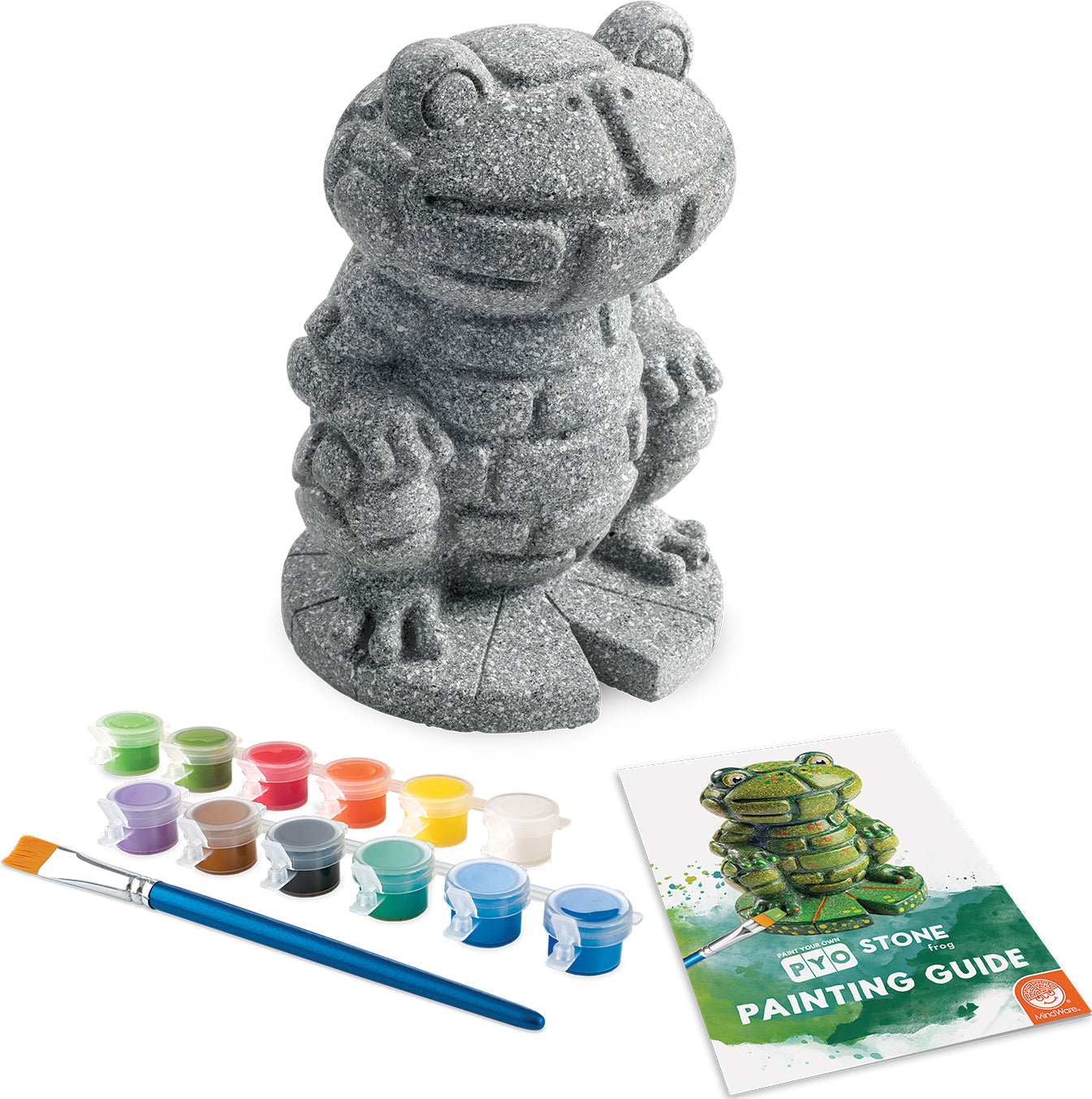 Regular price $32.99These Paint Your Own Stone Decorations are fun art projects for kids and adults alike! Create your own whimsical, hand-painted stone décor that’s just waiting to leap onto your porch, patio or deck. There’s no need to fuss over cement mixing or messy prep work; this stone frog is ready to paint, right out of the box. Vibrant paints encourage mixing, blending and special effects as well! Once your frog is painted to your satisfaction, bake it in the oven for a long-lasting, weather-resistant finish.• Decorate your outdoor living space with this inspiring, simple craft• Develops creativity, hand-eye coordination and color mixing skills• 4” x 6.5” stone frog, 12 paints, paint brush and instructions• Printable color planning template