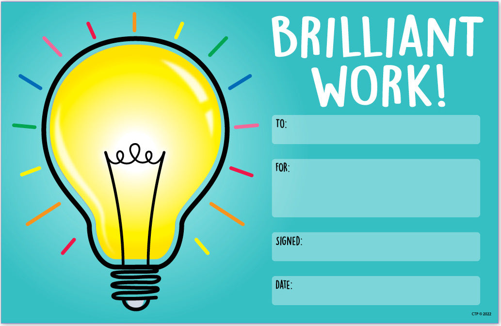 BRILLIANT WORK! AWARDS AWARD: 5.5"X8.5"