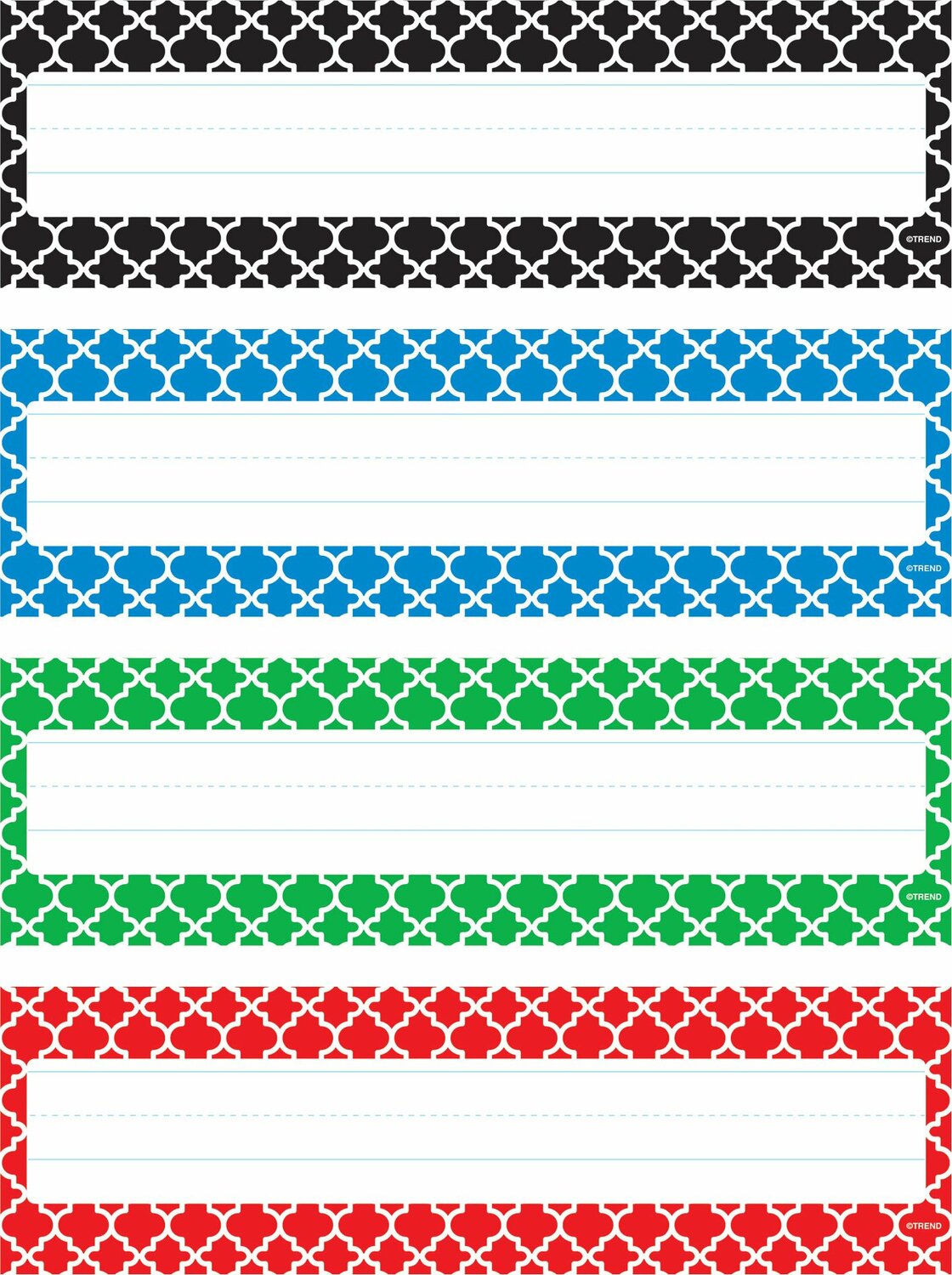Regular price $8.99Four designs per pack makes it easy to group students, determine line order, conduct sorting activities, and more. Invite students to select their favorites to label their desks and lockers. Guidelines included for printing and writing practice. 32 per pack. 9 1/2" x 2 7/8".