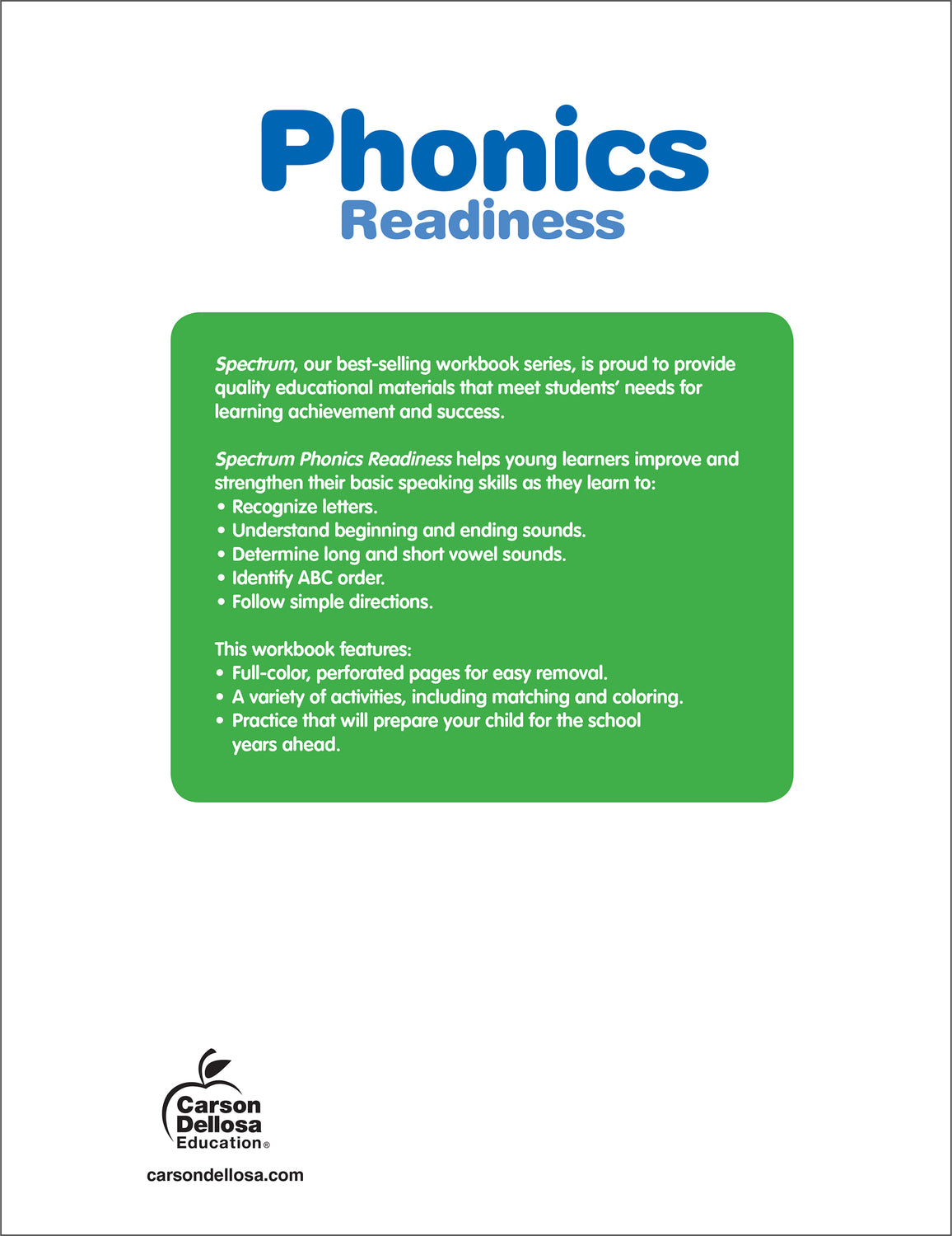 Regular price $14.99Spectrum Phonics Readiness Preschool Workbooks, Phonics for Toddlers 2-4 Years, Alphabet and Letter Recognition, Vowels, Consonants, and Sight Words Preschool Learning Activities [Paperback] Spectrum
