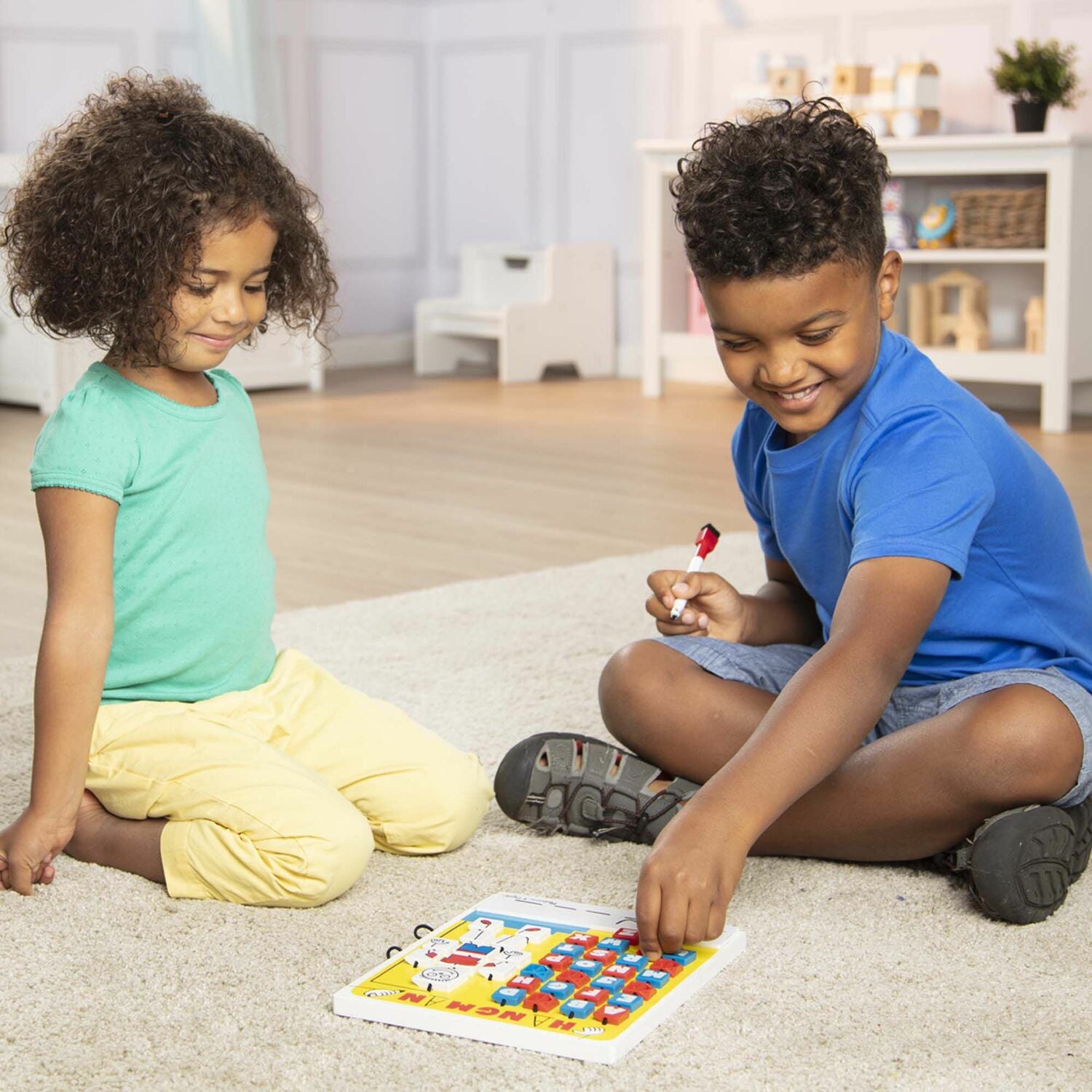 A classic word game with a twist! Kids will love thinking up words to stump their opponent, or taking their best guess to win it all! Includes one Hangman game board with an erasable whiteboard, self-storing dry-erase marker, and eraser. No loose pieces - ideal for travel!
