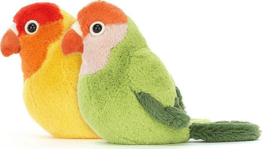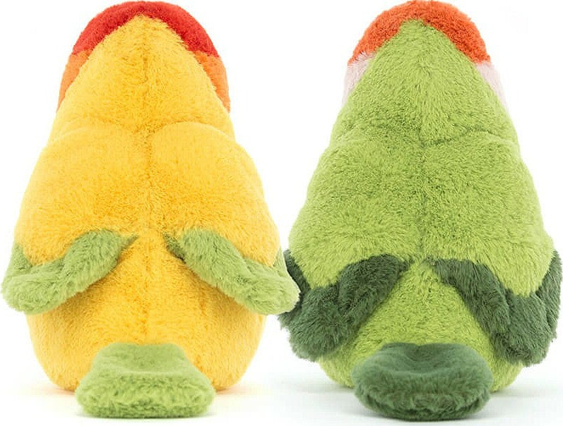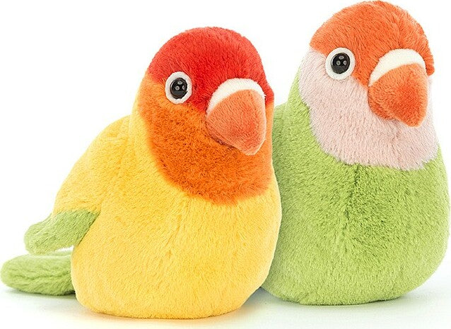 Tell someone special that they're your beak buddy with A Pair of Lovely Lovebirds. These colorful cuddlers are joined at the wing and love to cuddle up close. Fresh and fruity, these tropical lovebirds have fabulous fur in fruit sorbet colors. Desk companions or cozy comforts, they always bring the love.