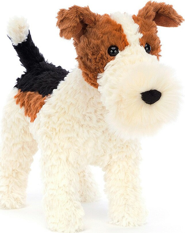 Loyal and loveable, Hector Fox Terrier's eager to set out exploring! Scruffly-pup, this intrepid pal has keen twizzle ears and a perky wee tail. A patch-perfect pup in cream, black and ginger, with a floofy snoot and bright shiny eyes, Hector always sniffs out adventure!