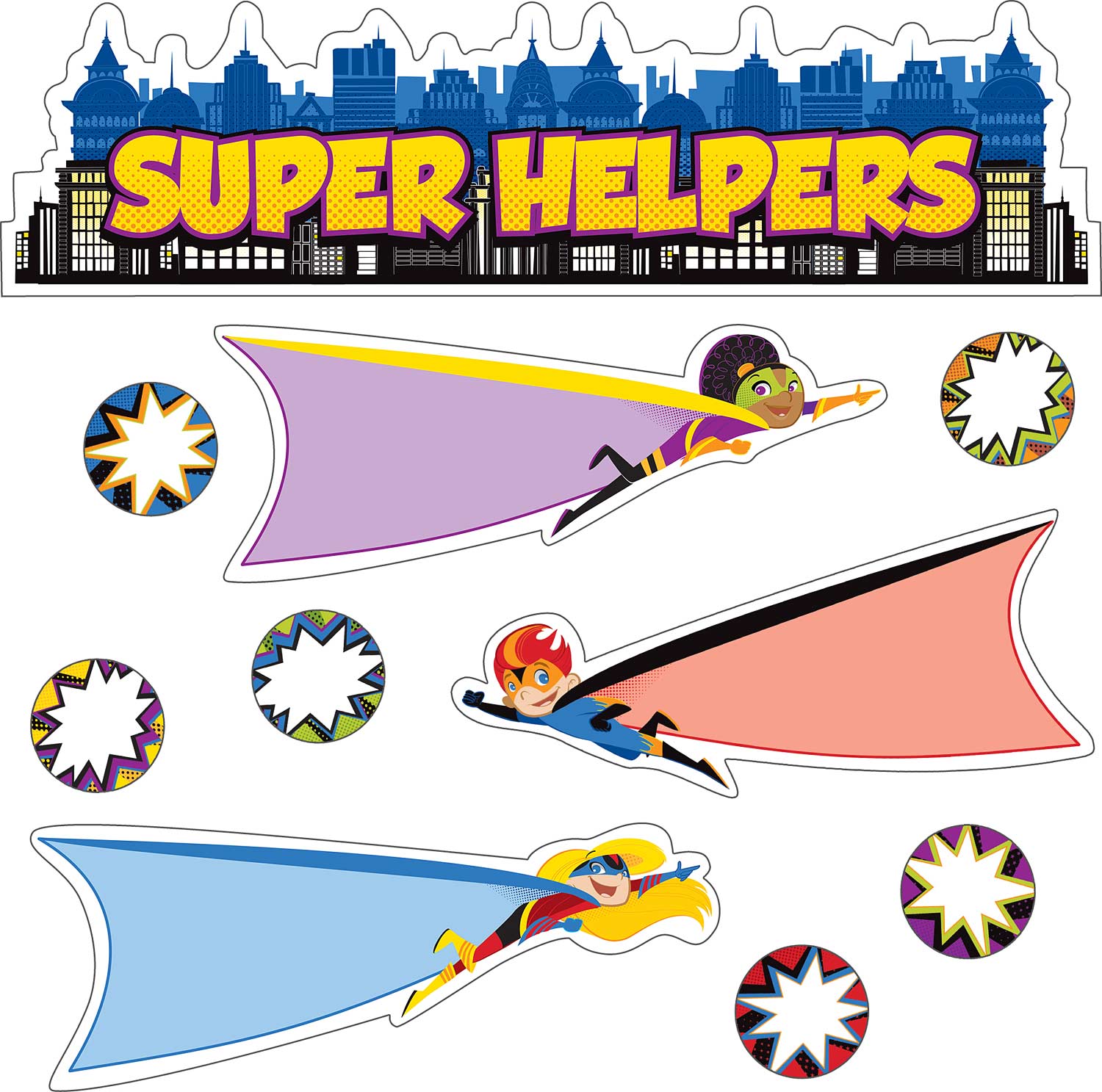 Regular price $10.99Energize and empower your students with the 41-piece Super Power Super Helpers mini bulletin board set. Featuring comic book style bursts and multicultural superheroes, this set offers an exciting way to customize your job assignment boards!