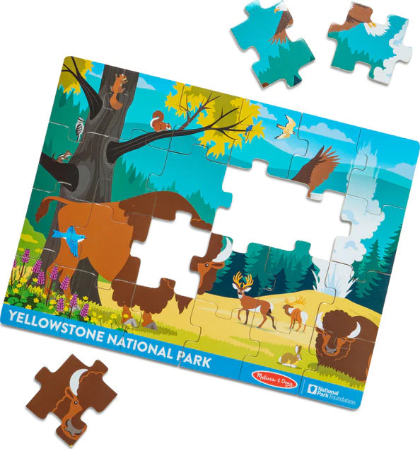 Regular price $11.99Discover Yellowstone National Park through play! Piece together the 24 sturdy wooden pieces to reveal a colorful park scene. A full-color ID guide includes a reference picture of the completed 9-inch by 12-inch (22.9 cm x 30.5 cm) puzzle and identifies 12 plants and animals, such as the peregrine falcon, American bison, and marsh marigolds, in English and Spanish. Use the guide for search-and-find activities and to learn about species native to the park. More than just a simple wooden puzzle, this educational toy for kids three and older is designed to make learning fun!