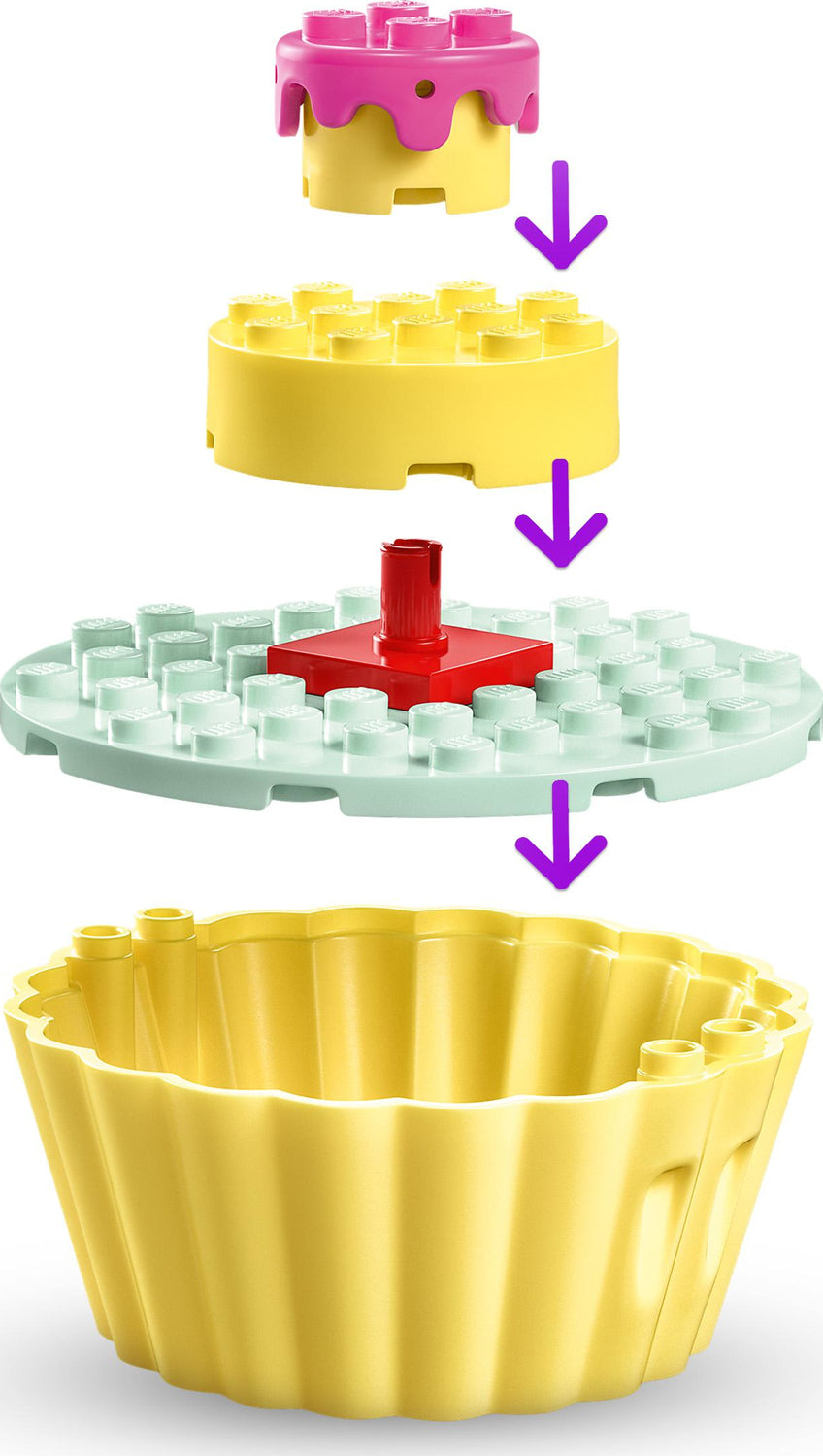 • Includes a Gabby minifigure and a Cakey figure plus a buildable small kitchen playset and a giant cupcake with a revolving top section