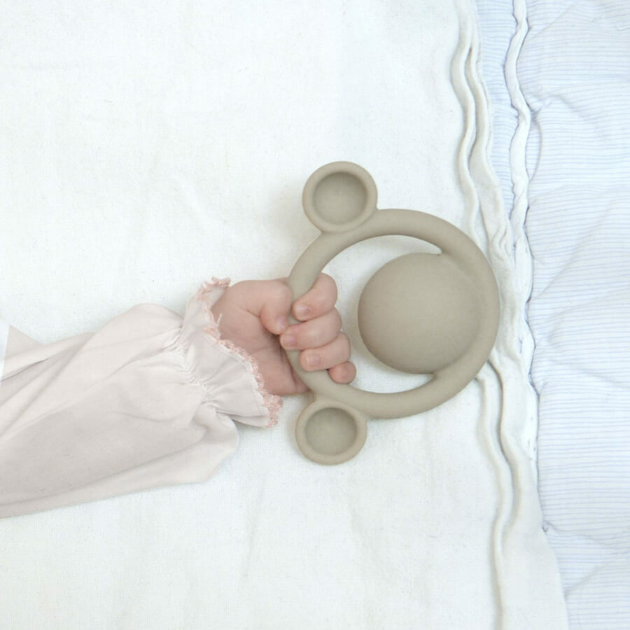 Made of quality, food-grade silicone and designed with a unique, open-ended shape, this fascinating teething ring will be playfully relevant well beyond their first years. It's large and easy for little hands to grab.