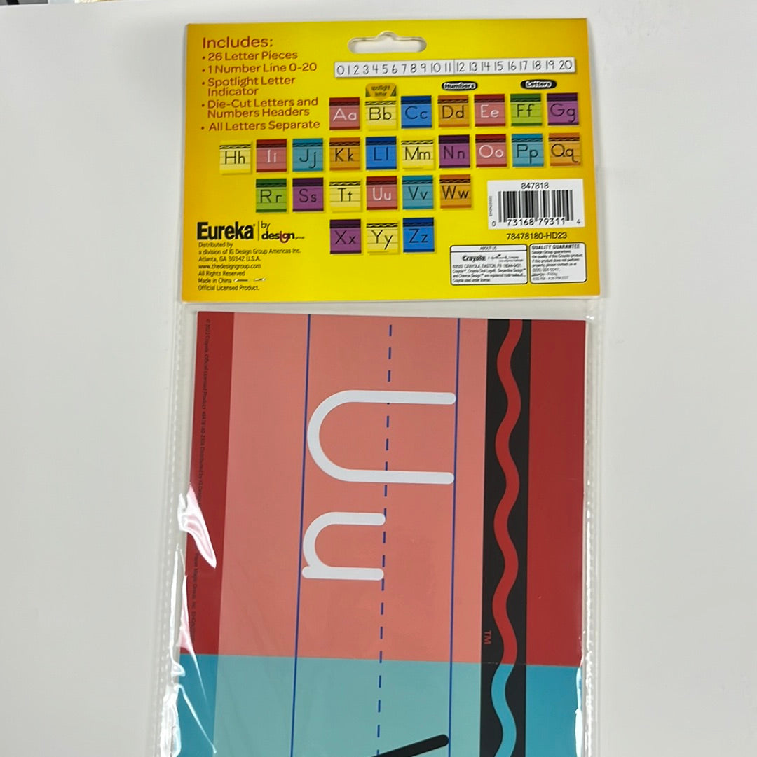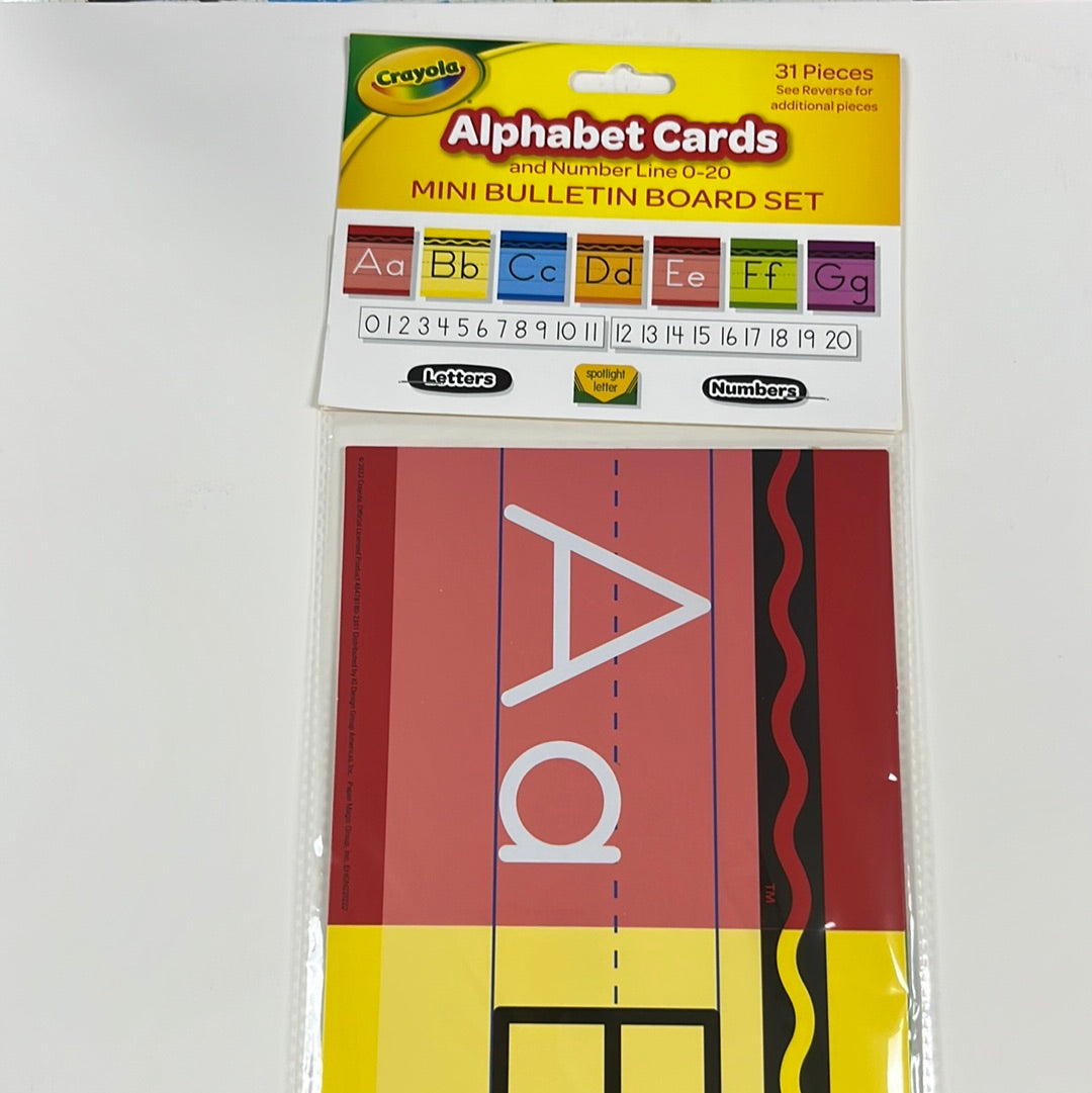 Regular price $11.99PROVIDE A VISUAL ALPHABET REFERENCE FOR YOUR STUDENTS (WITH A LITTLE HELP FROM CRAYOLA!) WITH THIS 31 PIECE EUREKA MINI BULLETIN BOARD SET. SET INCLUDES 8 PANELS WITH: 26 LETTER PIECES, 1 NUMBER LINE 0-20 (2 PIECES), 1 SPOTLIGHT LETTER INDICATOR, 1 "LETTERS" HEADER, AND 1 "NUMBERS" HEADER. MINI BULLETIN BOARD SET
