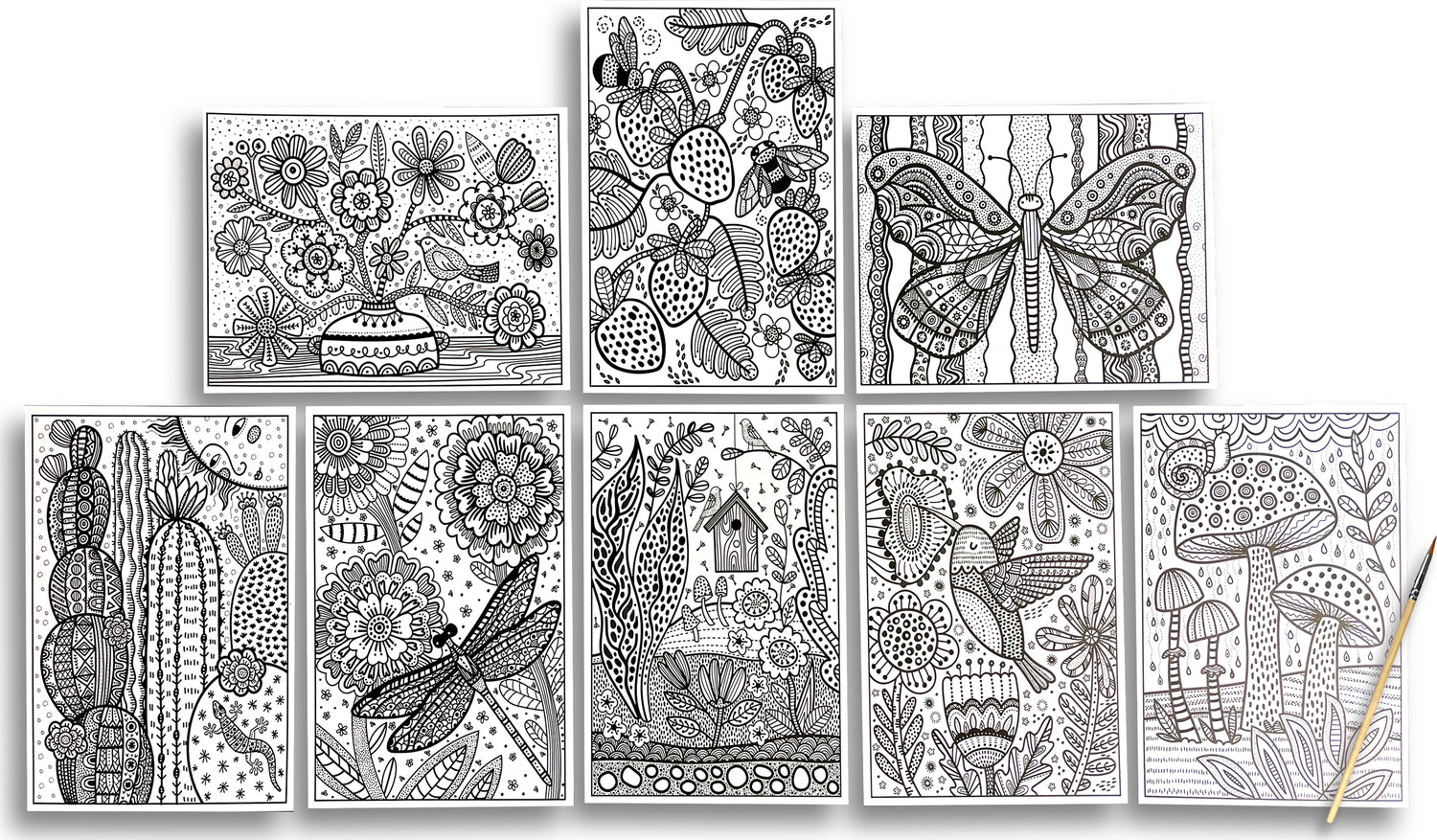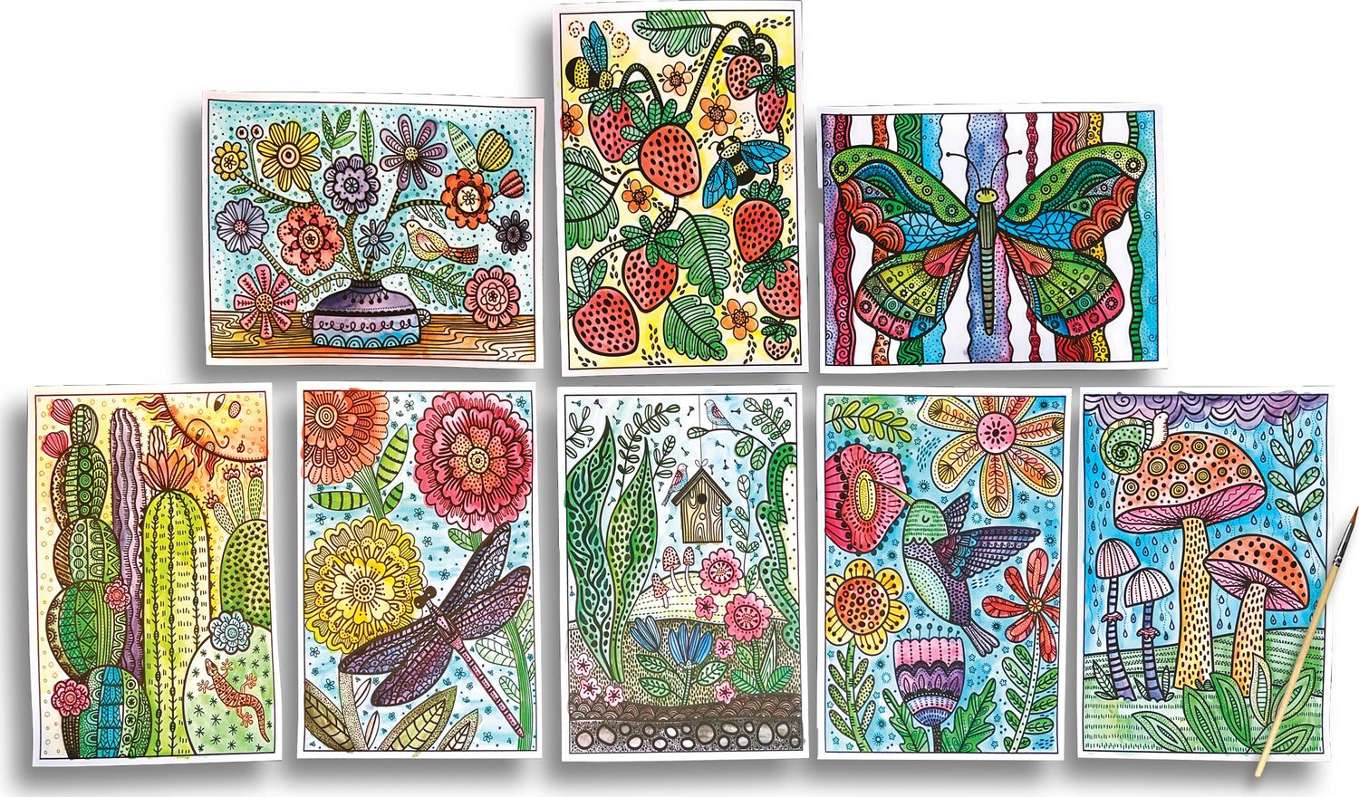 If you love taking in the oranges and browns of the fall or find yourself basking in the bright hues of spring, then you'll love these water reveal sheets! It includes a paint brush and eight different reveal sheets, all featuring nature-inspired illustrations. Deftly constructed to hide paint underneath the black lines, all you need to do is brush on some water and wait to discover the colorful work of art!