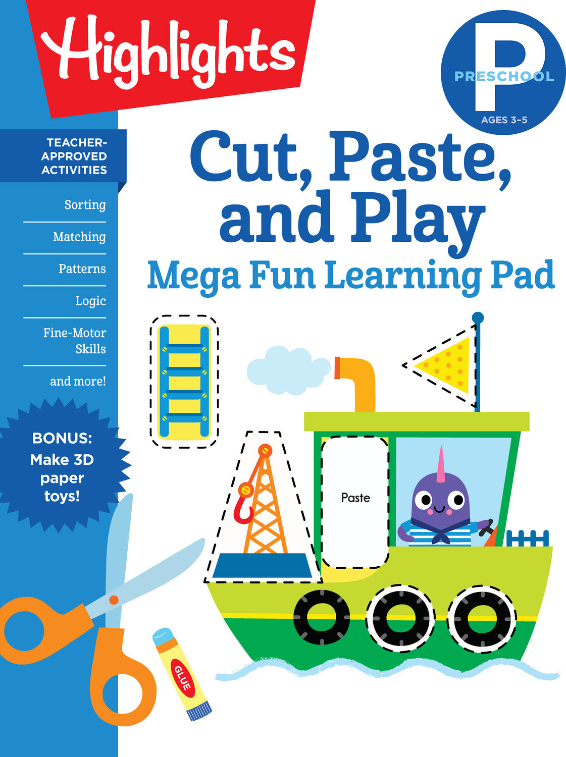 Regular price $11.99The ability to cut and paste is an important pre-writing benchmark, and Highlights puts Fun with a Purpose into this essential learning skill. Cut, Paste, and Play is a large, 176-page, full-color pad that gives preschoolers practice with scissor skills through more than 100 activities--including interactive puzzles, cutting lines and shapes, cutting out and assembling simple toys and games, and other activities that improve manual dexterity, attention to detail, and sequencing skills. Kids can cut out, paste, and play with characters and vehicles they build themselves, including an airplane-flying unicorn, a truck-driving penguin, and a bulldozer-driving puppy.