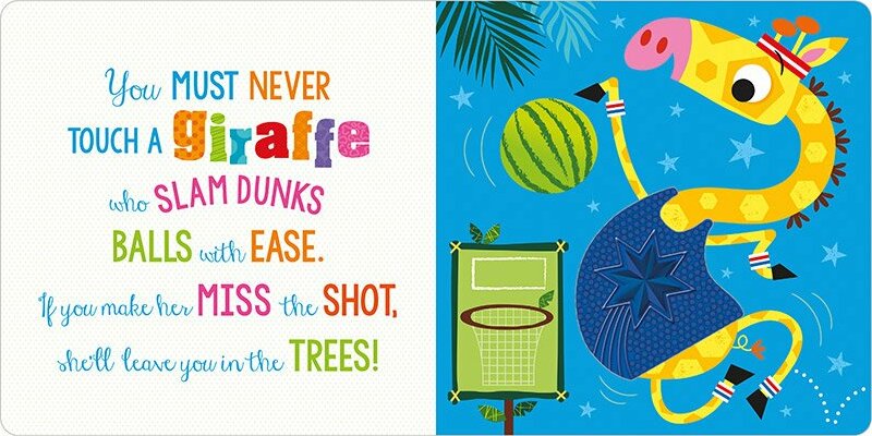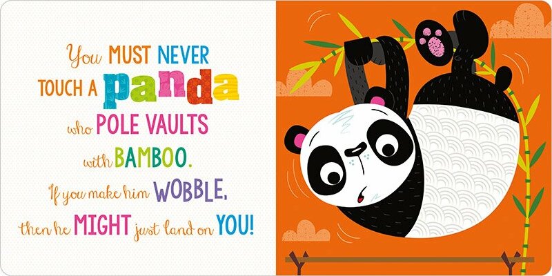 Regular price $12.99Never touch a panda...unless it's in this book! This new addition to the Never Touch a…. series features five sporty animals, and is accompanied by a silly rhyme that is sure to make little ones laugh! Children will love touching the bumpy silicone touches on every page, and Stuart Lynch's funny illustrations are sure to make this a hit with all families.