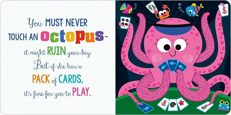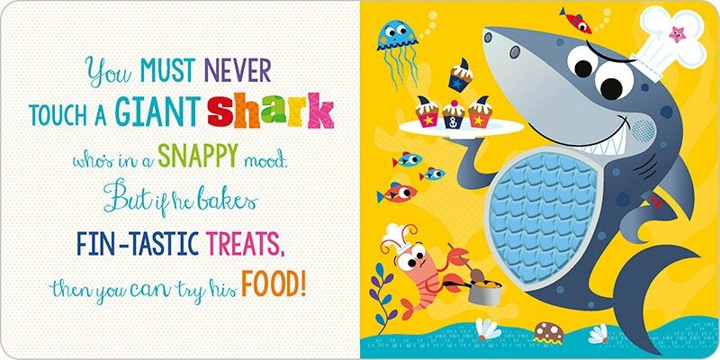 Regular price $12.99You must never touch a shark...except in this book! This ocean-themed touch-and-feel book is perfect for young children. They will love reading the funny rhyme that warns of the dangers of touching a shark – and then ignoring the advice! Innovative silicone touches feature throughout the book, with a different texture for children to explore on every spread.