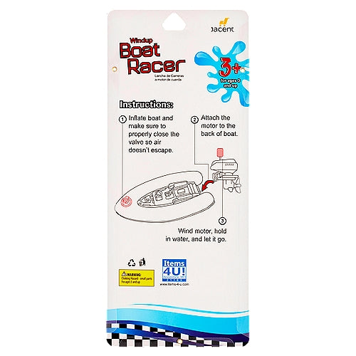 Regular price $5.99Windup Boat Racer. For ages 3 and up 3+. Inflatable. Pump included. Jacent™.
