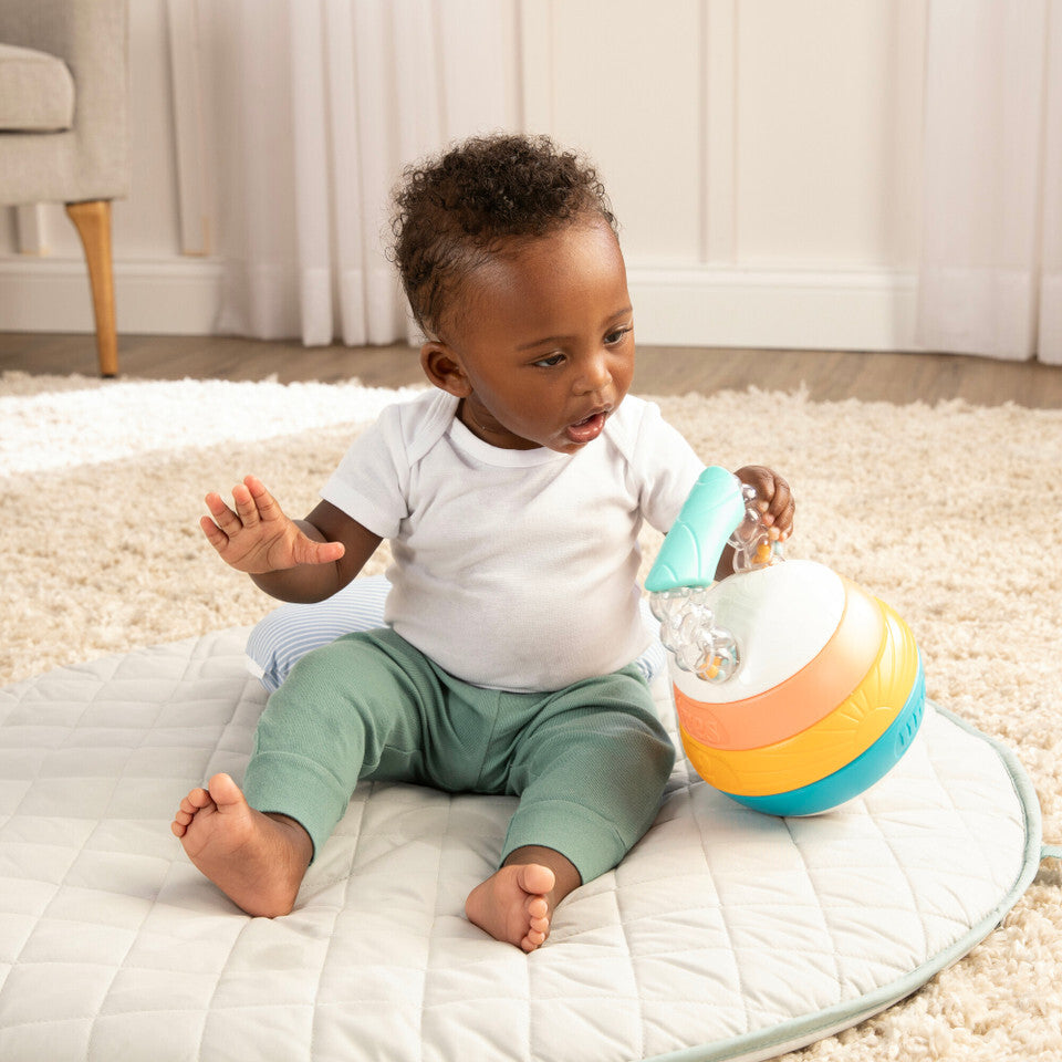 Regular price $26.99Welcome to Bebé Fuerte! Robin Arzόn, VP of Fitness Programming and Head Instructor at Peloton, believes in the power of movement for all ages and as a mom herself, was inspired to create this new collection of infant toys. Bebé Fuerte celebrates the magic that movement brings to baby and caregiver alike. Her Stack & Count Kettlebell is a classic stacking toy with a twist! The top twists onto the base to form a kettlebell shape and keep all the pieces together. Little ones can be just like their caregiver and “workout” with this baby kettlebell, but with the added fun of beads in the handle that make an enticing rattling sound as the kettlebell is moved. Ready to stack? Just twist off the top and place the pieces together for classic play that encourages both fine motor and problem-solving skills.