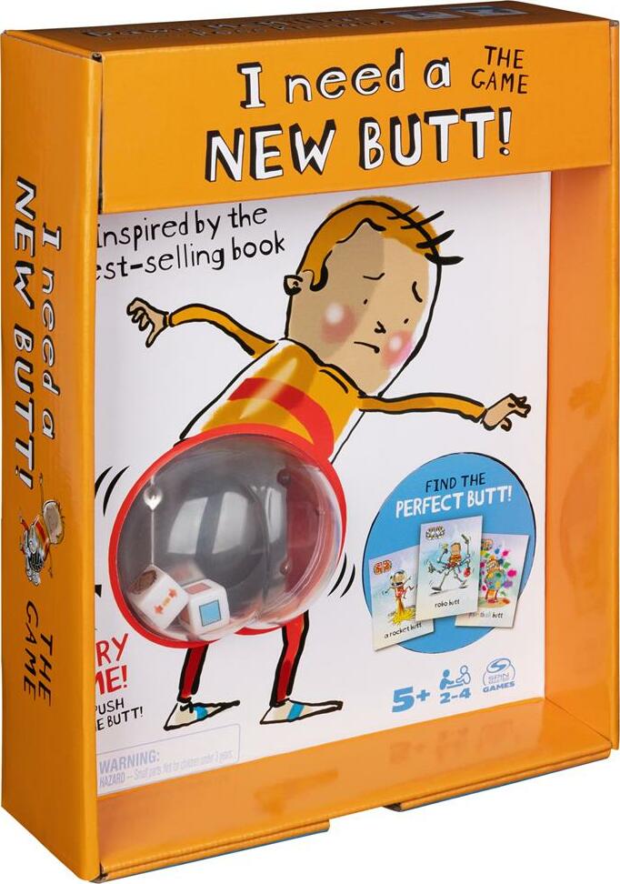 • HOW TO PLAY: Press the Butt Popper, race around the board, and match Butt Cards! To win, be the first player to collect all of your matching butt cheeks on your New Butt! cards.
