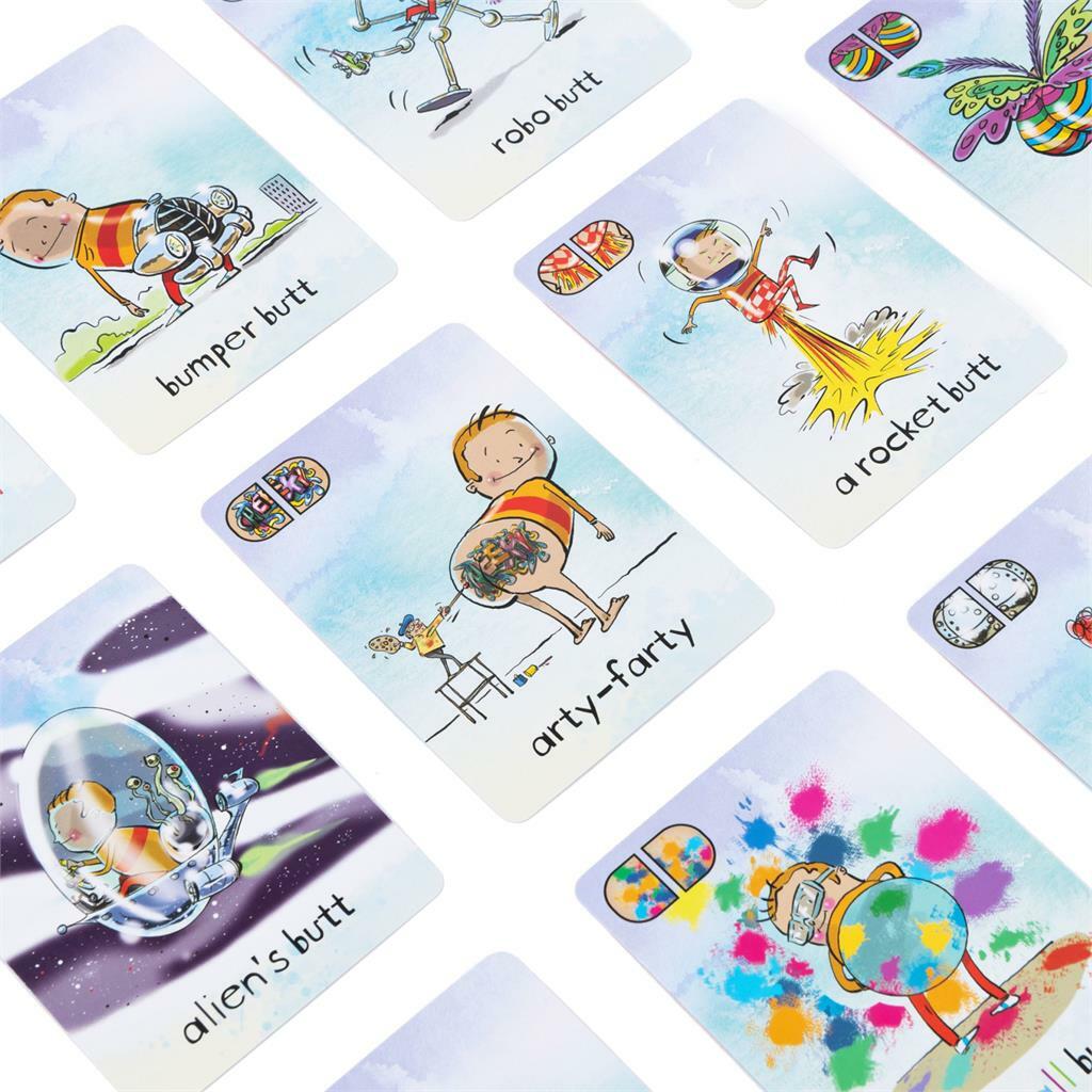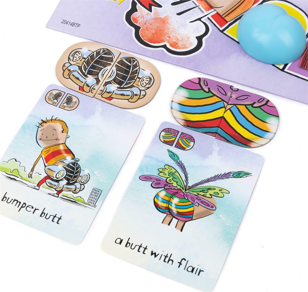 • FIND THE PERFECT BUTT: Finding out your butt is broken is a bit of a worry! But think of the possibilities for a new one. Board game cards include cheeky new butts such as “rocket butt”, “robo butt”, and “paintball butt”.