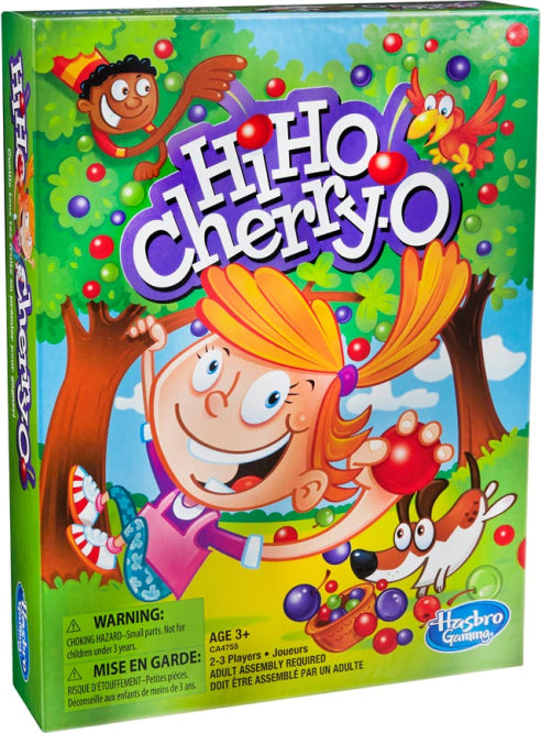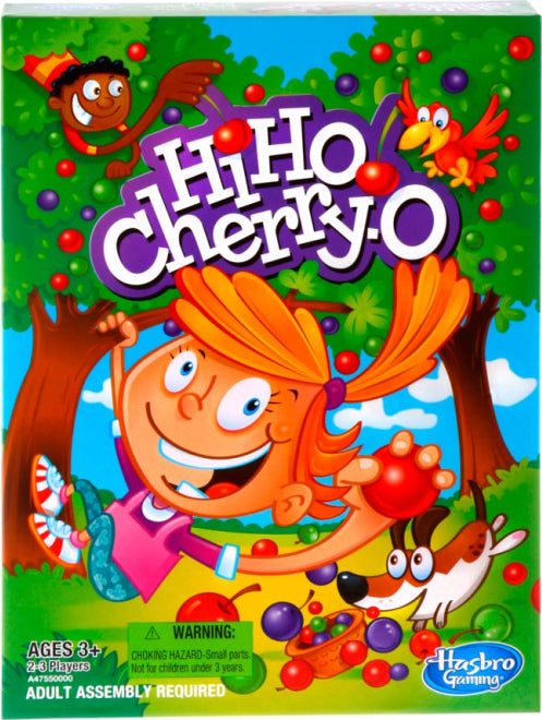 Hi Ho Cherry-O will delight and challenge preschoolers as they gather cherries, blueberries and applies, and practice math skills along the way. The first player to pick all the fruit from their tree wins!, Each game comes with a game board, spinner with arrow and base, 10 cherries, 10 blueberries, 10 apples, a basket and instructions. A free storage bag is also included. , This game is recommended for 2-3 players ages 3 and up. Some adult assembly is required. Hi Ho Cherry-O is a game of basket-filling fun First player to pick all their fruit wins Helps teach basic math skills Recommended for 2-3 players ages 3 and up Comes with a free storage bag