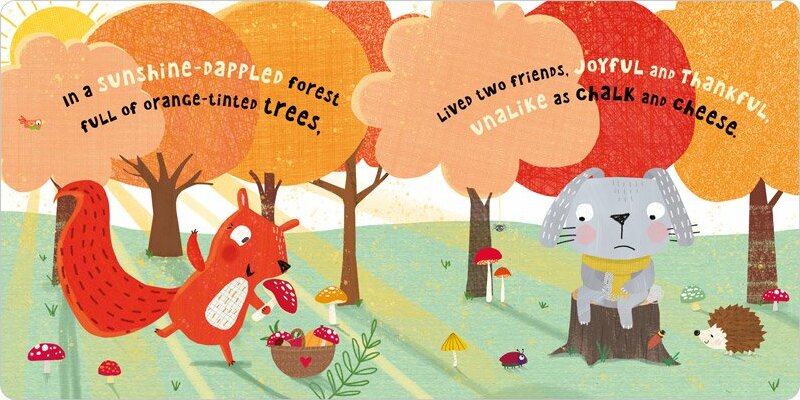 Regular price $10.99Joyful and Thankful are best friends in the forest...but they're very different. Joyful is happy and bouncy, just like her name. But Thankful is gloomy and ungrateful! Luckily, he soon learns to appreciate the Fall season, and be thankful for his friends, family, and the beauty of the forest around him. This beautiful, rhyming book helps teach children about the value of being with loved ones and giving thanks for what they have. SWEET RHYMING STORY ABOUT BEING THANKFUL