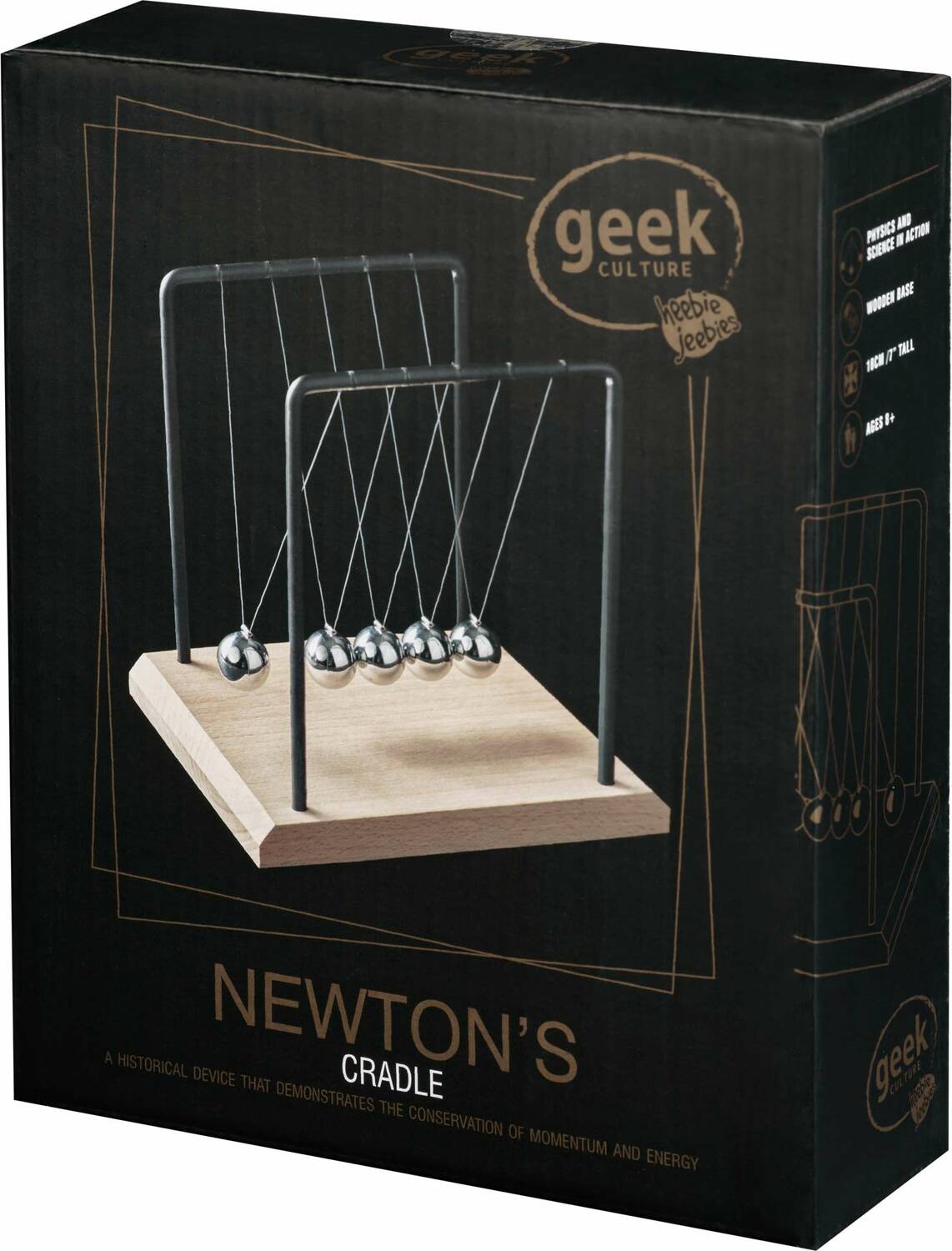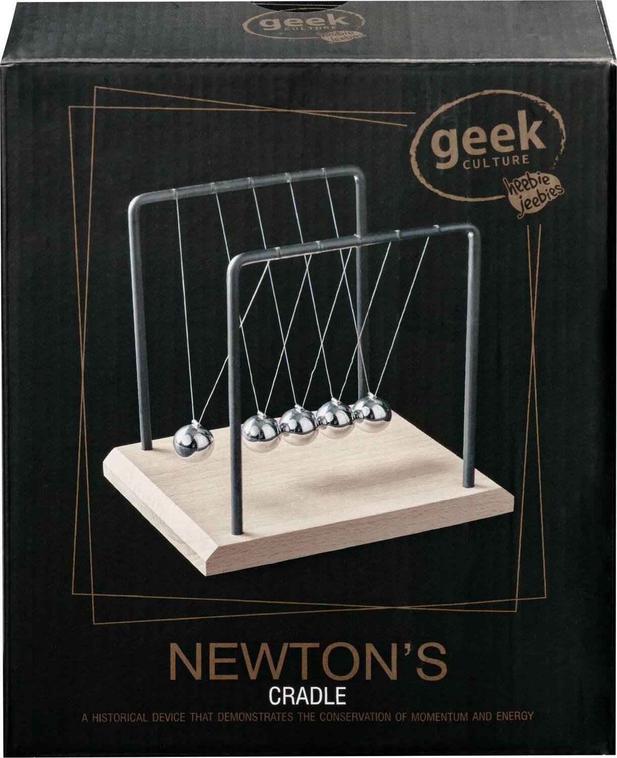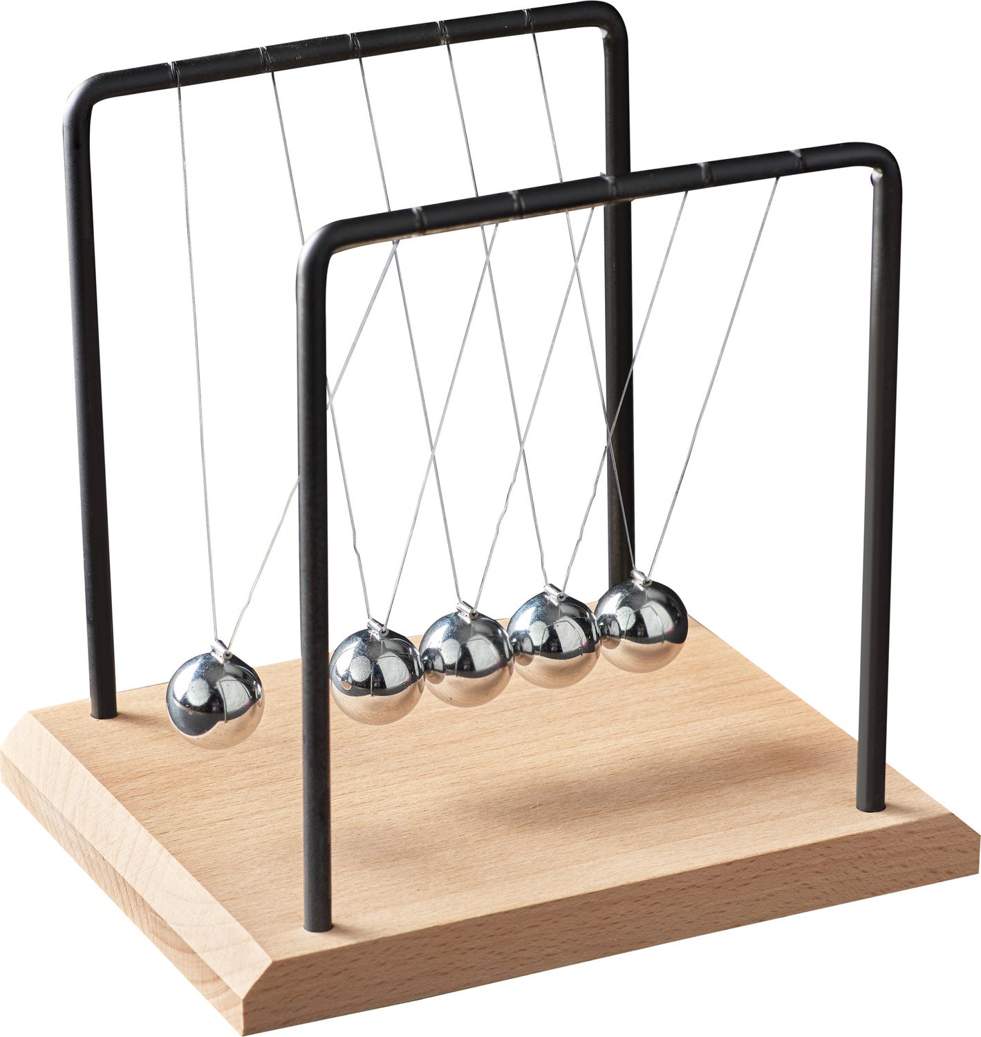 Regular price $46.99Newton's Cradle is an iconic science toy that has been updated to make a classy desk accessory. When you lift one ball and let it drop, watch conserved momentum and energy work in front of you! The base is made from beautiful beech wood while the frame features a stainless steel finish. This size Newton's Cradle stands at 18 cm tall with 5 balls this makes this office desk toy truly ornate.