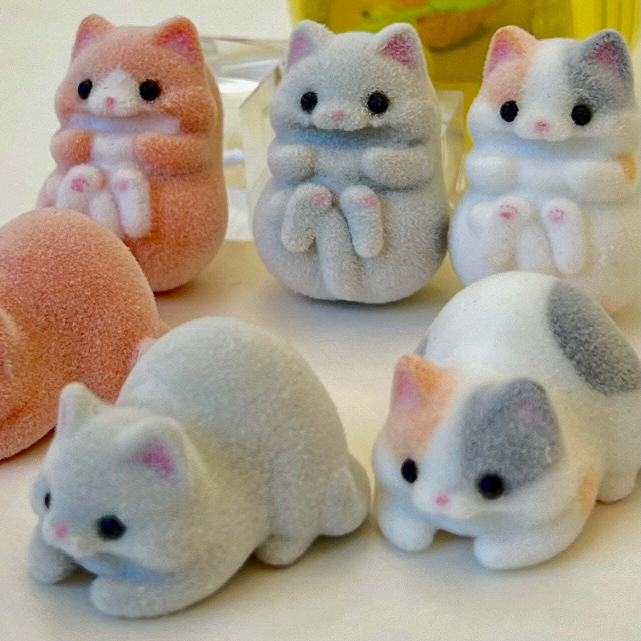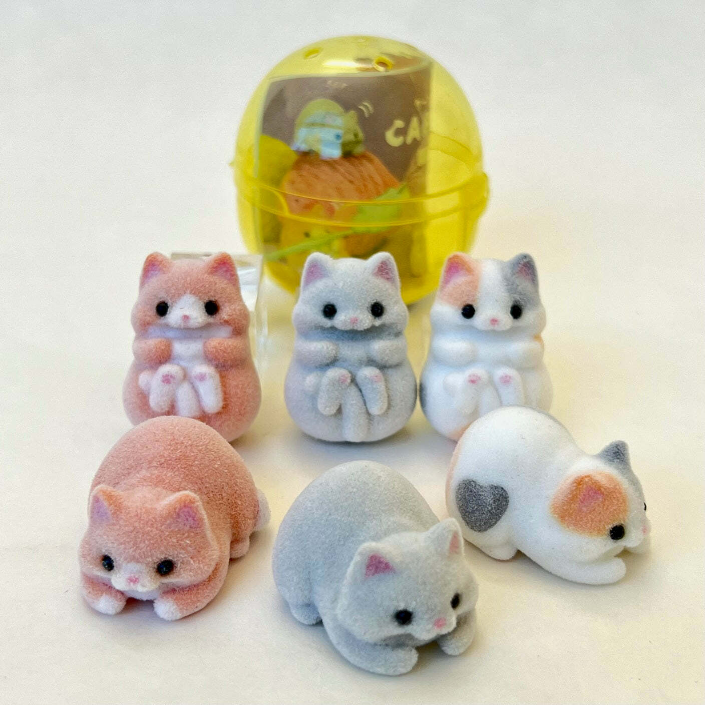 Six Assorted Cat Figurines Capsule by Qualia Japan. 1" to 2¼".