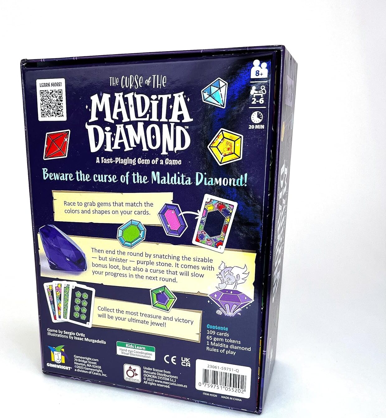 Regular price $29.99Beware of the cures of the Maldita Diamond! Race to grab the gems that match the colors and shapes on your cards. The end the round by snatching the sizable – but sinister – purple stone. It comes with bonus loot, but also a curse that will slow your progress in the next round! Collect the most treasure and victory will be your ultimate jewel!