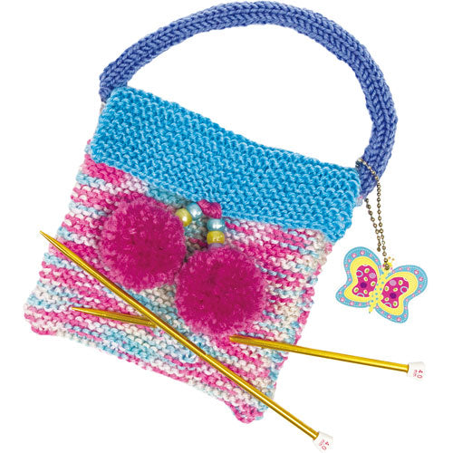 Create a knitted bag, cute purse and fun pompom scarf using the French knitter, knitting needles and pompom tool. Learn how to knit using the detailed step by step guide.