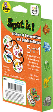 Spot It! comes back in this new eco-conceived packaging, without plastic. The aim remains the same, everyone plays at the same time. 55 cards, each with 8 symbols on them, 5 variants... You can play each of the mini-games in order, out of order, or simply keep playing the same one. The aim remains the same, everyone plays at the same time. 55 cards, each with 8 symbols on them, 5 variants... You can play each of the mini-games in order, out of order, or simply keep playing the same one. Units per Case: 36
