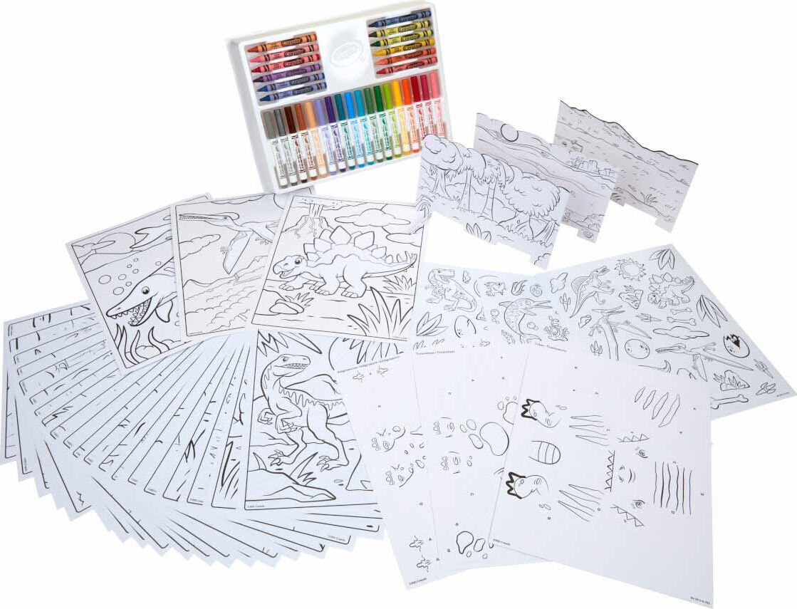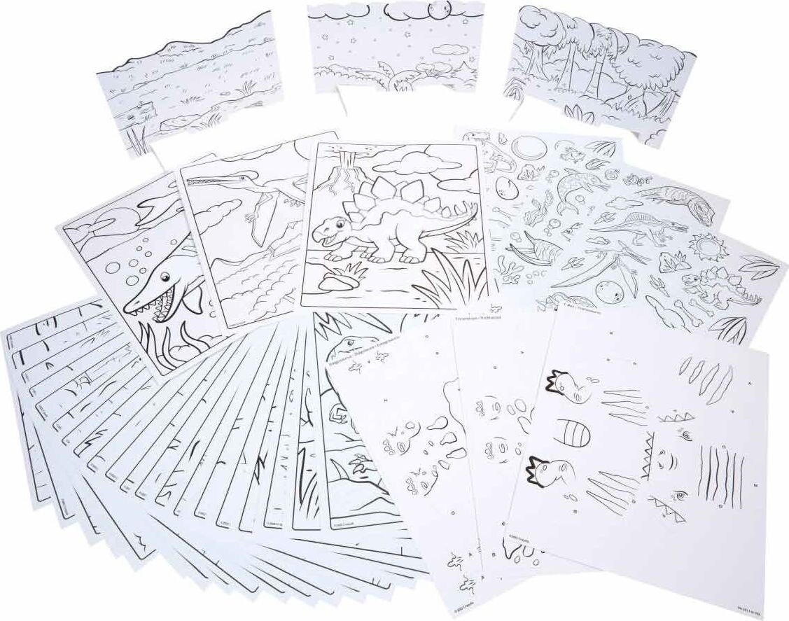 DINOSAUR GIFT FOR KIDS: Includes unique Flocked Coloring Pages, Pop-Out Origami Creations, Activity Pages, Pop-Out Story Scenes, 12 Washable Crayons and 18 Washable Pips Squeaks Skinnies Markers.