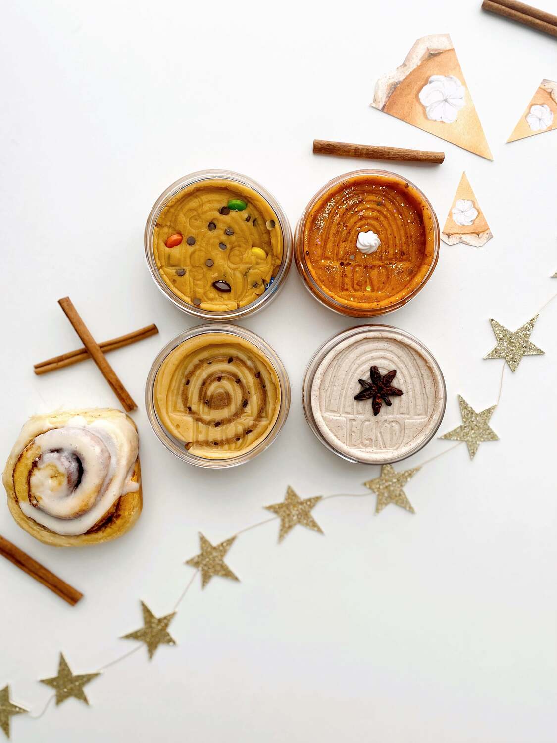 This cinnamon bun inspired KidDough is a mouthwatering way to keep kids engaged in play! Layers of Sticky Bun and Cinnamon KidDough are swirled together to make this a-dough-rable comfort filled classic fall treat.