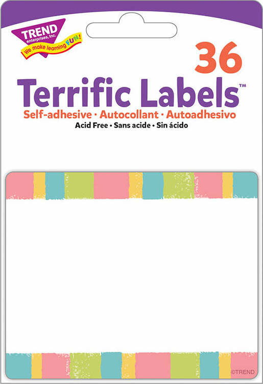 - 36 self-adhesive tags. Each label measures 2-1/2" x 3".