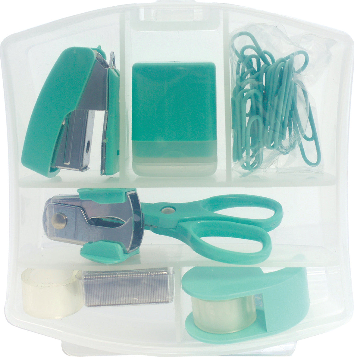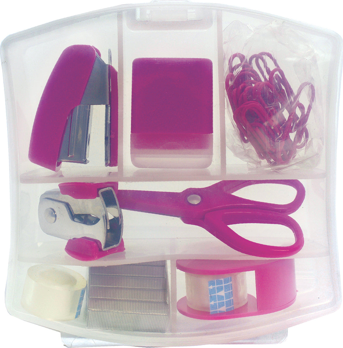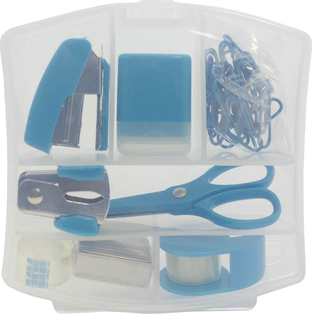 Always be prepared with this portable stationery set! Comes with scissors, stapler (and staples), pencil/pen and a hole punch!