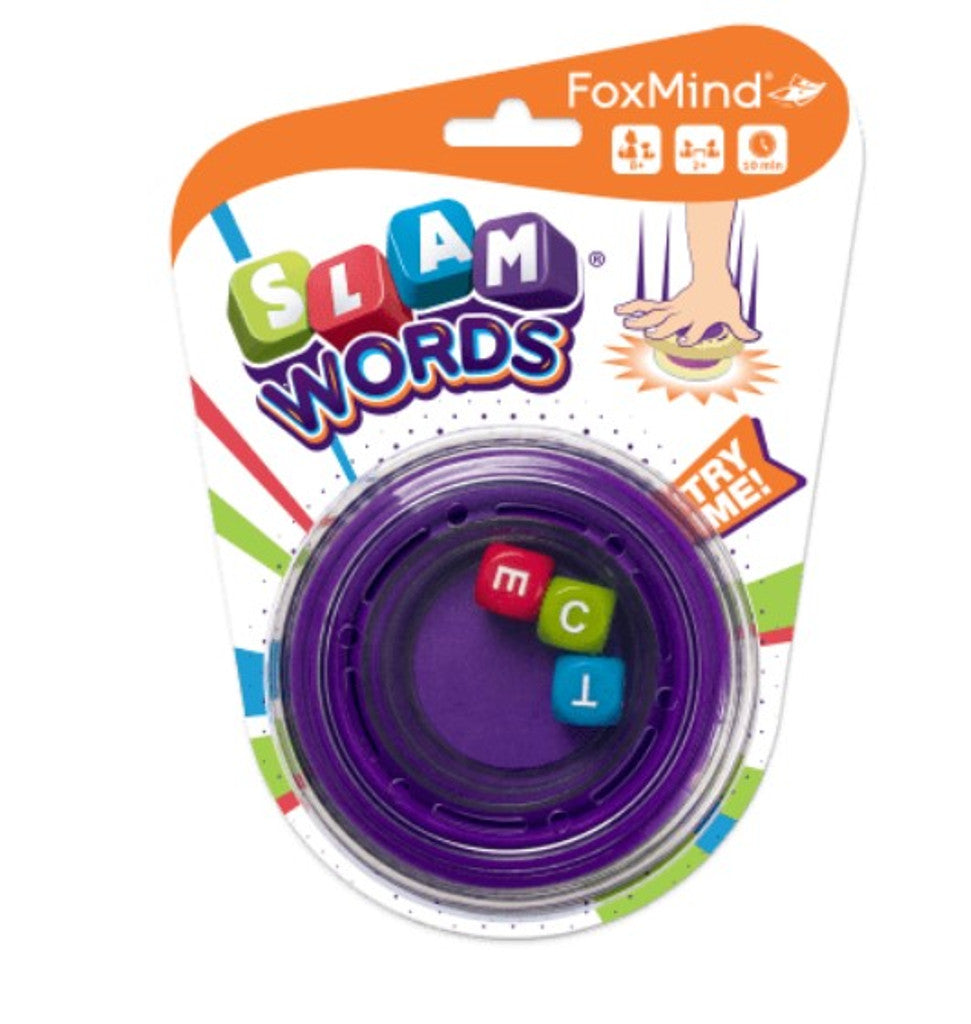 Slam Words is the fastest word search game ever! Shake the cup, slam it shut to reveal 3 letters. Quickly find a word that uses the three letters and pass the cup to the next player who has to find a new word, or they are out. Part of our Slam Dice™ collection, this game is highly portable for fun anywhere.