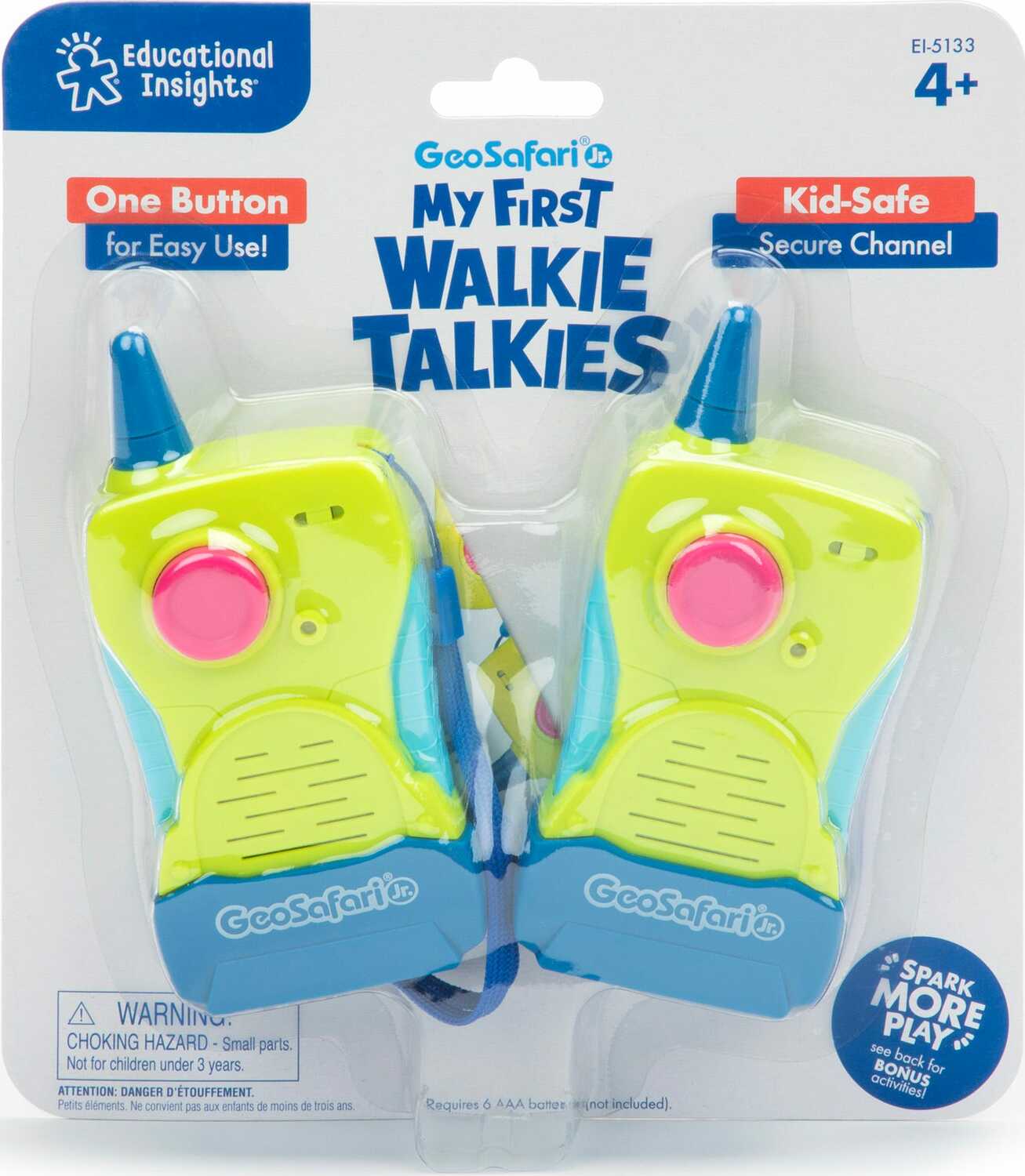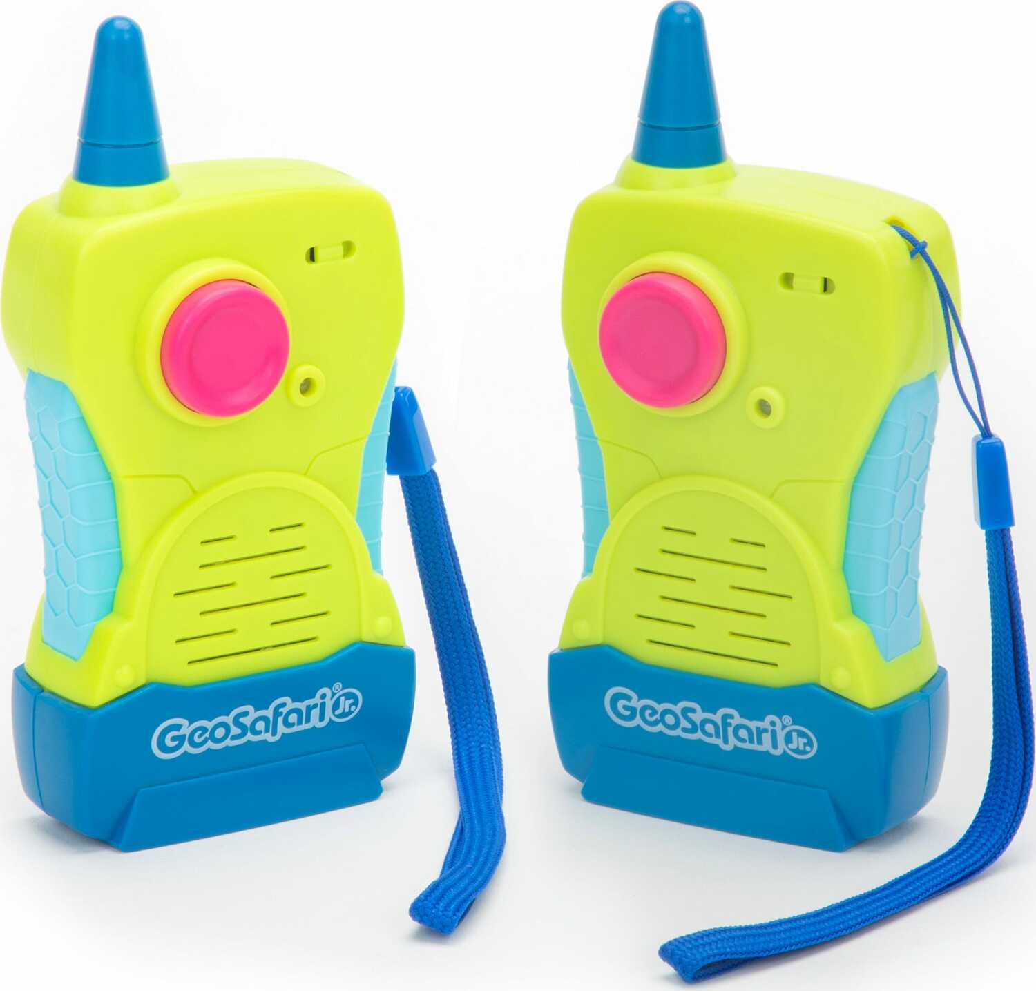 Encourage independent exploration with these walkie talkies for kids—the perfect educational toys for 4 year olds! With just one button and a secure kid-to-kid radio channel, junior explorers can stay in touch all by themselves. Just press the button to connect, then talk! The outdoor toy for kids includes two walkie talkies with wrist straps and a 300-foot range.
