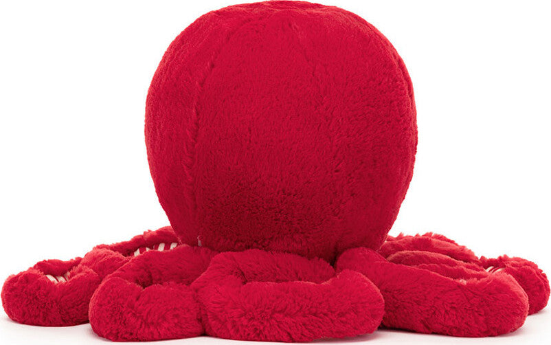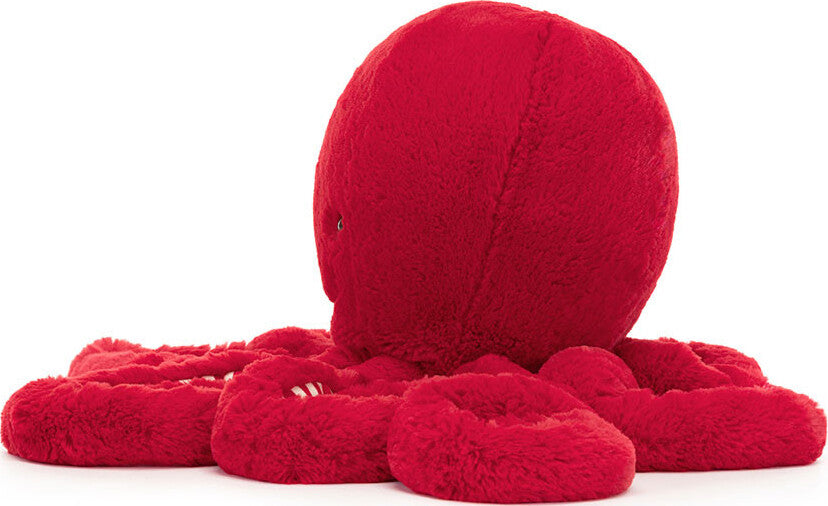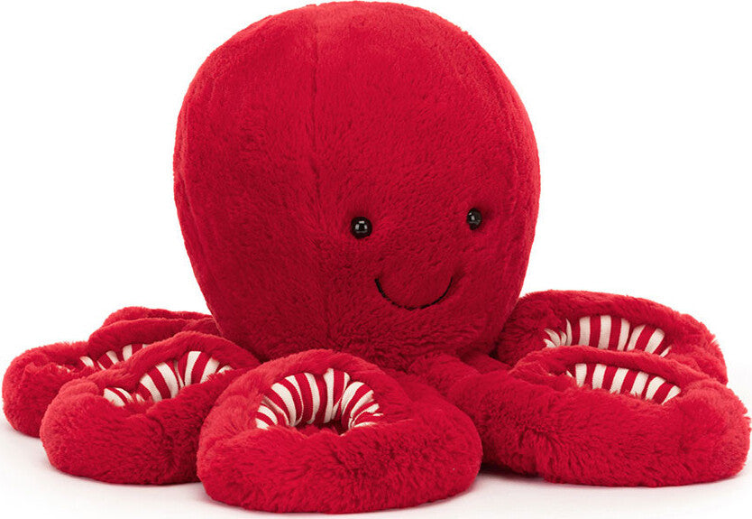 Regular price $76.99Do they celebrate holidays under the sea? Ask Cranberry Octopus! This rich red octopus is holiday-ready, with a deep scarlet mantle that's very huggable. Look under those curly, springy arms to find candy-cane stripes in cosy jersey! Imagine the gifts those could give!