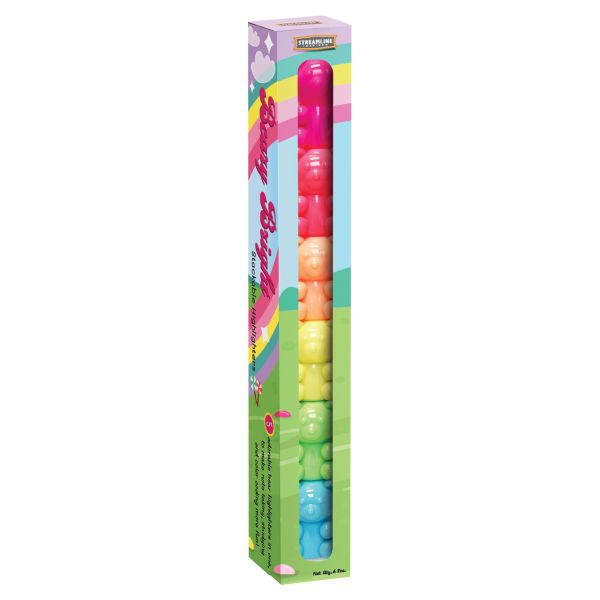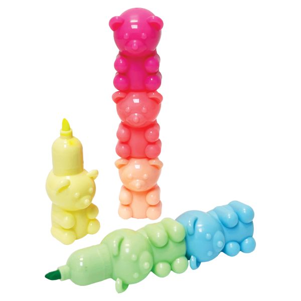 Regular price $8.99Stack ‘em high, stack ‘em low, stack ‘em for on the go! Stackable and BEARy cute highlighters! Gummy bear shaped highlighters come in 5 ink colors (pink, yellow, green and blue) plus a purple cap. Ink matches bear color. Fun to arrange in your own color order. Chisel-tip.