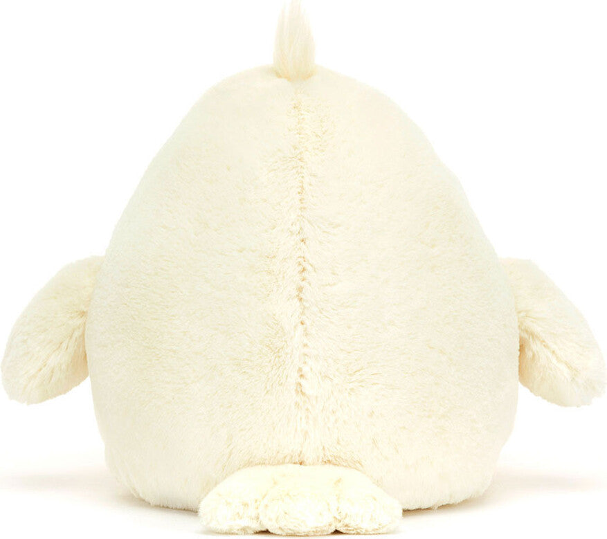Head down to the pond to find Delia Duck. Super soft in cream fur, Delia has a matching tuft of long hair and short, wide wings. With bright orange feet and a matching sad beak, this grumpy duck prefers cuddles over bread.