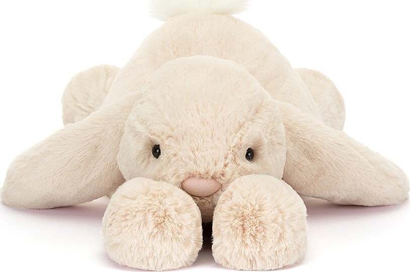 Smudge Rabbit is one scrumptiously soft bun! This oatmeal bunny has a fluffy cream bobtail with long ears and limbs, and loves to flop in your arms for the best of cuddles.