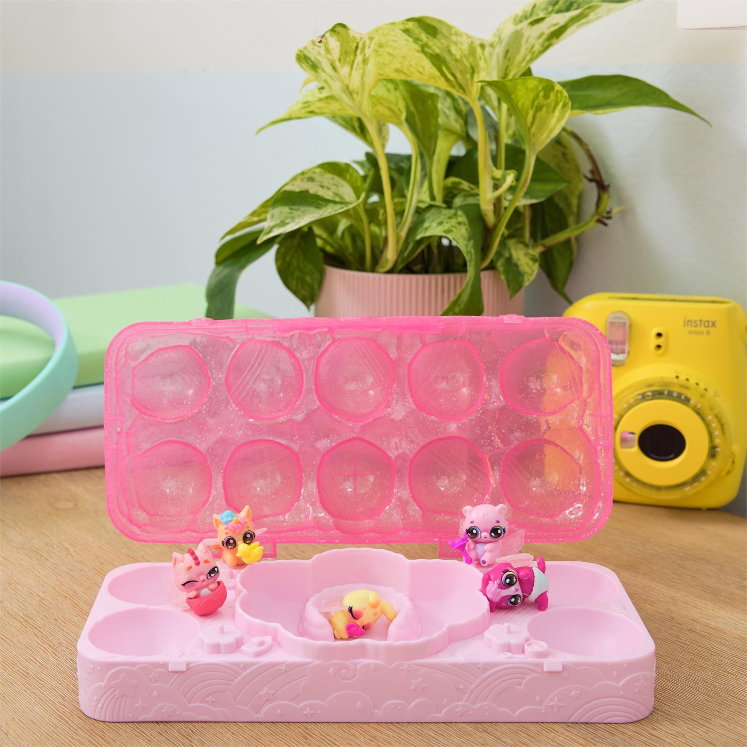 Regular price $29.99Hatch a carton of characters with the Hatchimals Alive Rainbow Splash Carton! With your love and care, these playful Hatchimals come to life in a colorful new way: eggs that hatch in water, changing the water’s color to match the character! Open the sparkly lid to discover a built-in hatch zone and 5 Hatchimals eggs containing 5 characters, each inspired by the colors of the sunset. Before hatching, choose a spot that’s easy to clean and protect your play area. Set an egg in the hatch zone and remove the wings, then fill the area with water. In seconds, the water changes color as your new friend starts revealing itself, cracking through the egg! Once all 5 super cute characters have been revealed, attach their wings, and use the 5 nurturing accessories (swaddle blanket, rubber ducky, rattle and more) to add to your imaginative storytelling. Dry the carton and display the characters inside or take the carton on-the-go! Those who enjoy action figures, small toys, dolls, and doll house play will love Hatchimals surprise toys. Fun birthday gifts, Christmas gifts and stocking stuffers or gifts for any occasion. Experience a splash of color with the Hatchimals Alive Rainbow Splash Carton! Includes: 5 Hatchimals CollEGGtibles, 1 Carton, 10 Accessories (5 Pairs of Wings, 5 Nurturing Accessories), 1 Checklist, 1 Instruction Sheet