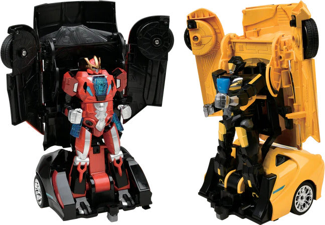 Let's face it- a toy robot is pretty cool. But one that can transform into a sporty race car at the simple push of a button is even cooler. Throw in a second robot to battle with a bud, and you've got the hottest toy on the block. Punch the heart at the center of your opponent 3 times and the loser will instantly transform back to car form.