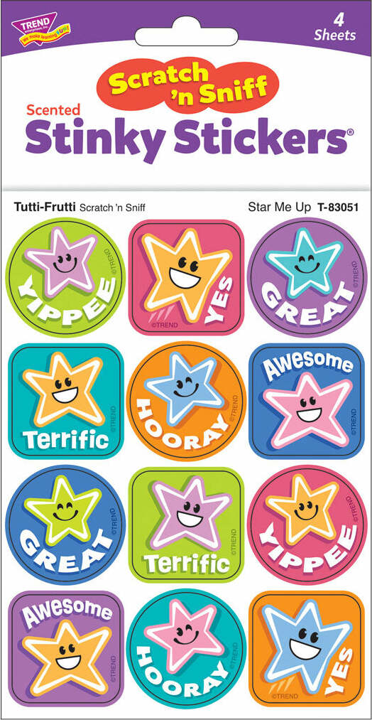 Regular price $4.99Encourage others to be a star! Everyone’s favorite stickers to scratch & smell. Fun to collect, trade, and celebrate accomplishments and special occasions. Stickers come in a mix of round and square designs.