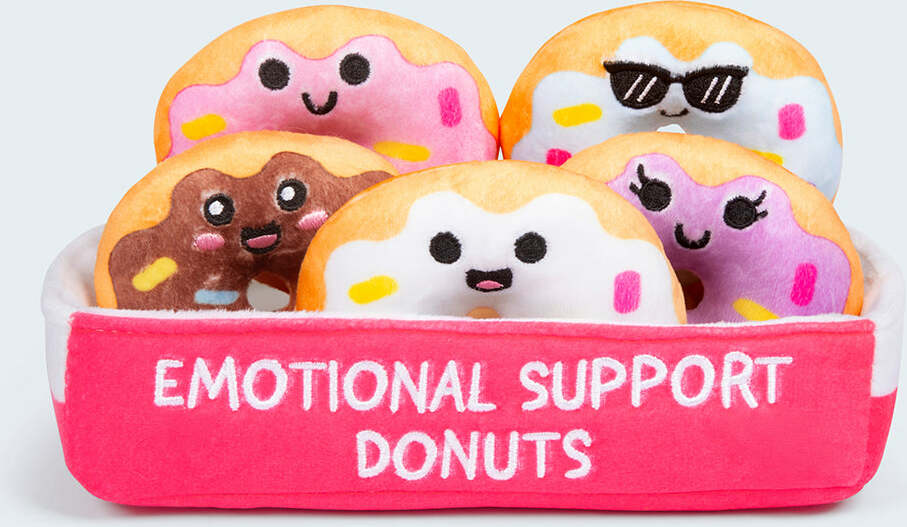 • Comfort Buddies: Includes 1 cozy container and 5 individual plush donuts. Each funny character comes with its own name, personality, and expression. Choose a favorite or take the whole crew with you.