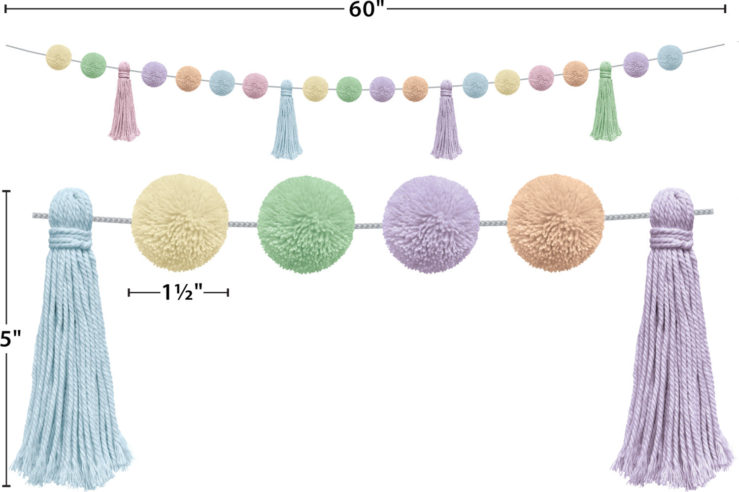 Pastel Pop Pom-Poms and Tassels Garland
