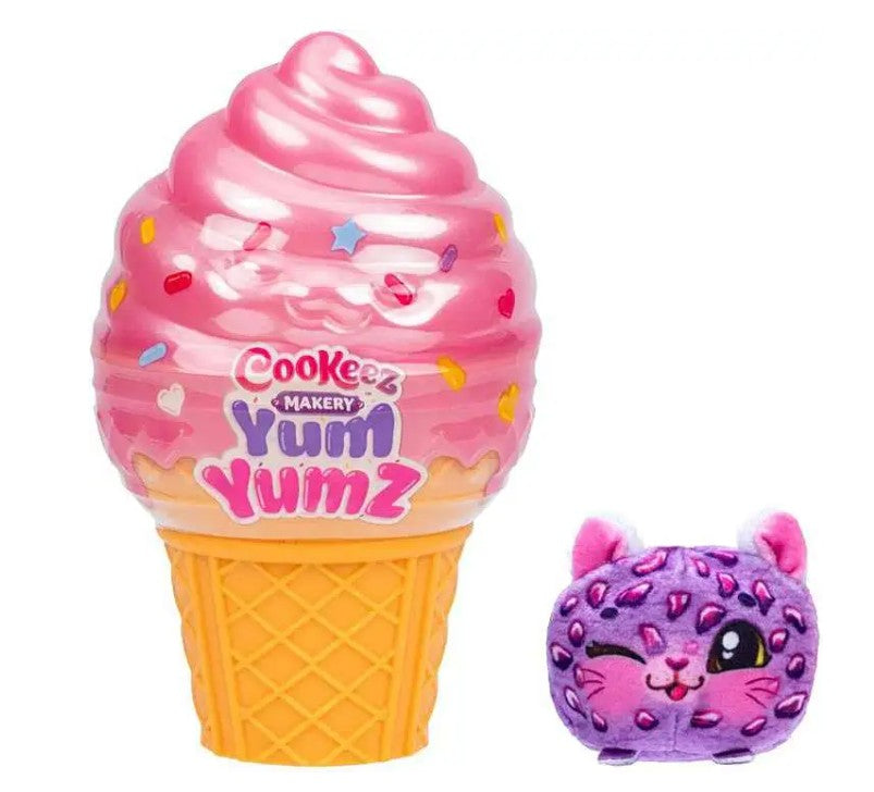 These adorable plush pets are tucked inside an ice cream cone, bursting with fun and sweet scents. Pop off the top to reveal an irresistible, collectible friend shaped like a tasty treat! Each Yum Yumz plush comes from Cookeez Makerys world of delight, where pets and desserts collide in the most adorable way. With over 30 pets to collect, there's always a new plushie to meet and smell!