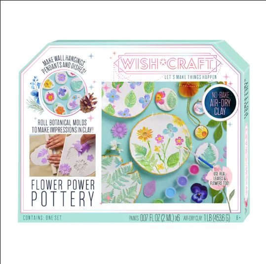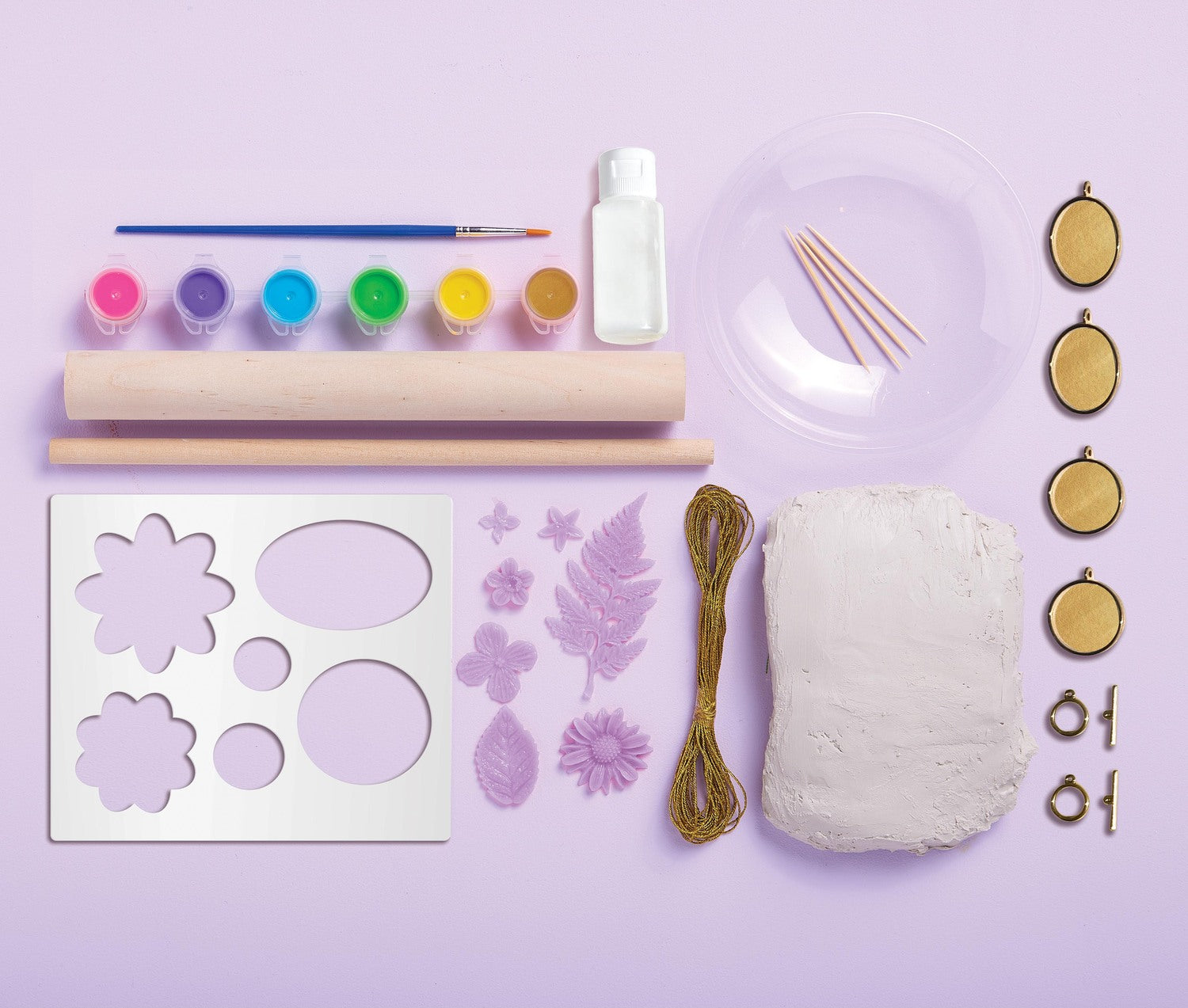 Regular price $30.99Roll the included botanical stamps or real leaves and flowers into air-dry clay. When dry, paint the flower impressions with pretty colors, metallic gold and glaze for a beautiful finish. Make ceramic jewelry pendants, trinket dishes and more! Kit is jam packed with 1 lb of air-dry clay, a wooden rolling pin, 7 botanical stamps, stencil, 6 paints, glaze, paintbrush, 4 jewelry pendants and clasps, bowl template, rod for wall art and gold floss. You will be amazed at how easy it is to make beautiful pottery!