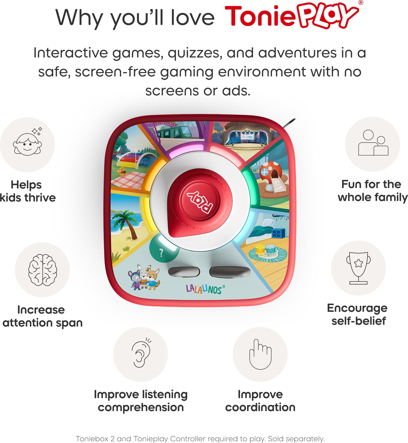 Interactive Play: Unlock a world of games, quizzes, challenges, and adventures with Tonieplay for Toniebox 2, all in a safe, screen-free environment with no ads.