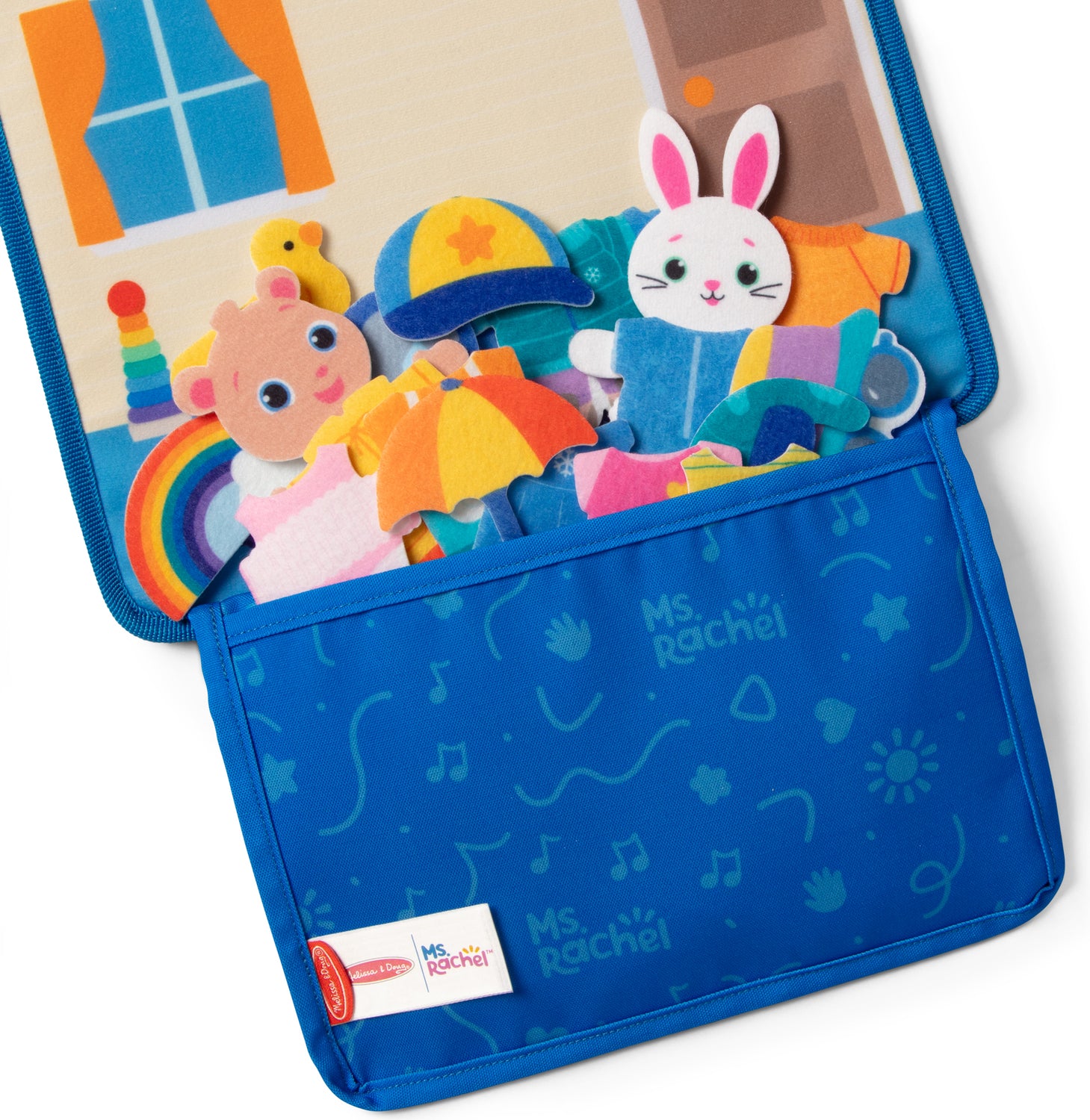 Features- OFFICIAL MS. RACHEL TOYS: Tell stories and practice routines with Ms. Rachel by layering 32 jumbo felt play pieces with soft hook fabric backing that sticks to other pieces and 4 scenes on a fold-out take-along felt board with built-in storage pocket