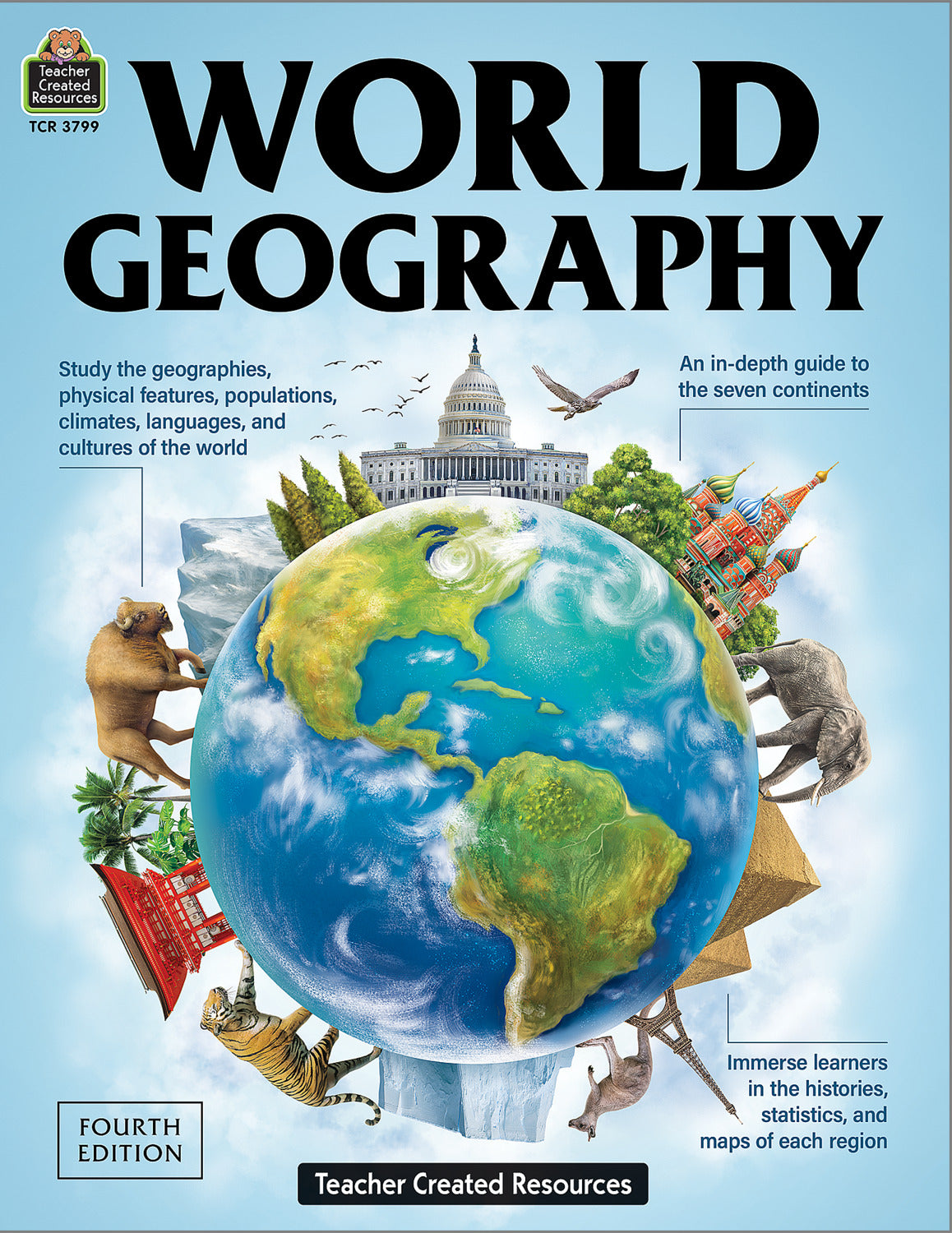 Regular price $23.99Reproducible maps and challenging activities help students gain a thorough knowledge of world geography. Students learn not only about rivers, mountains, climate, and vegetation, but also about people—their cities, languages, religions, clothing, and more. This 2nd edition features updated maps and data.