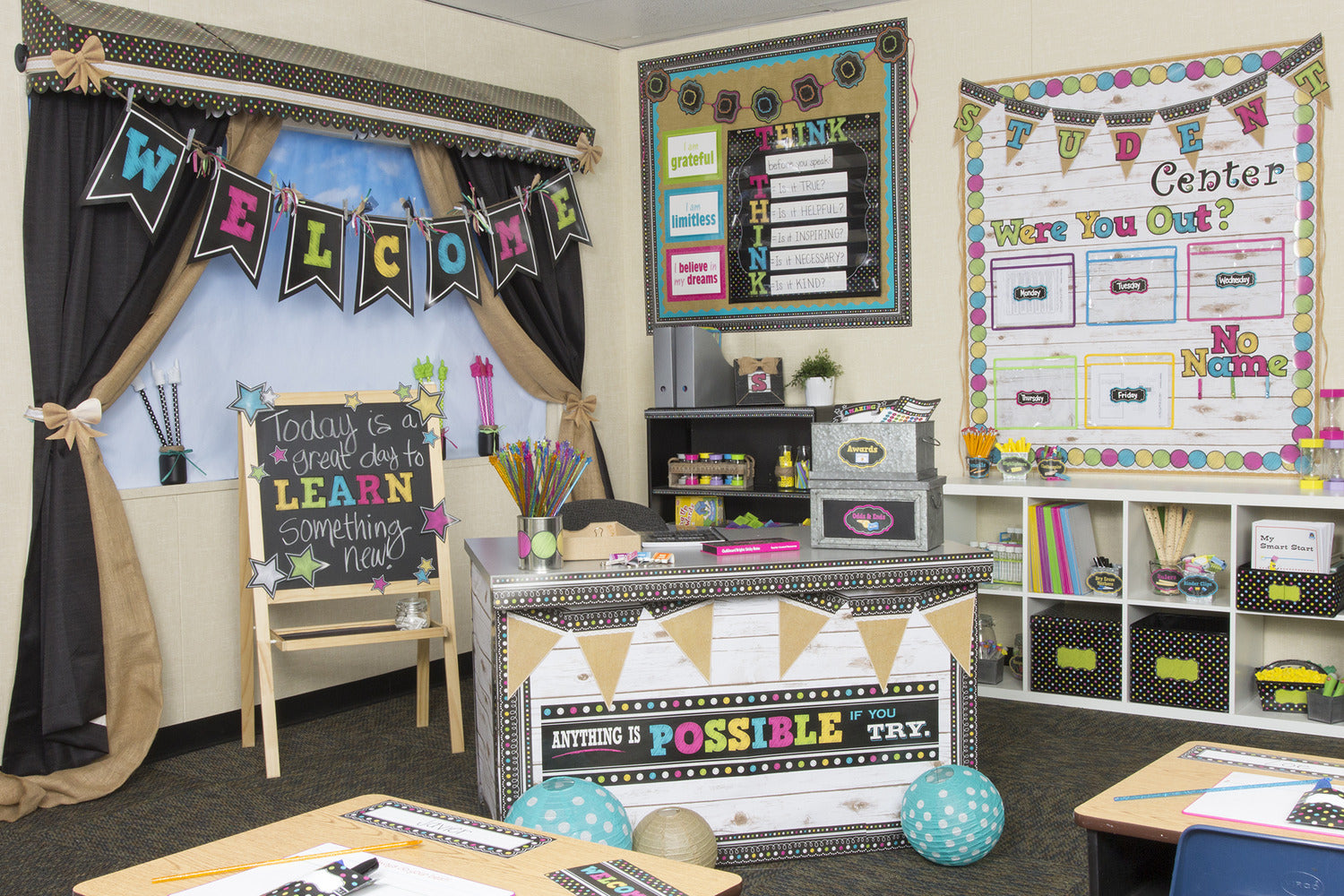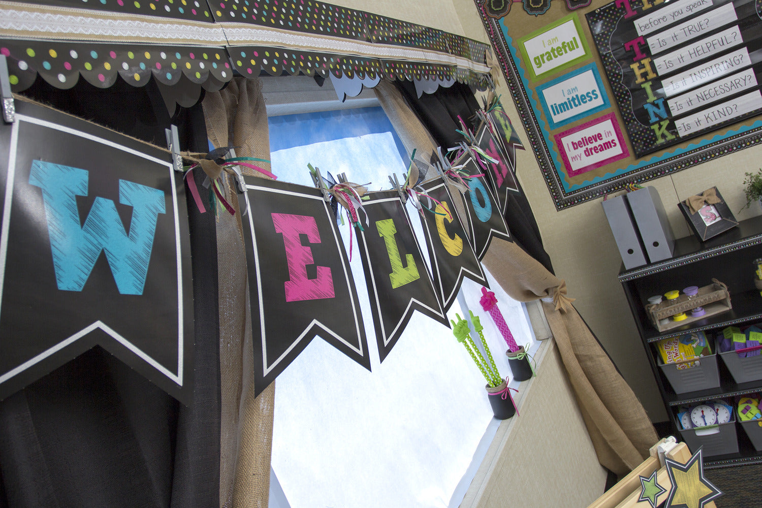 Chalkboard Brights Pennants Welcome Bulletin Board