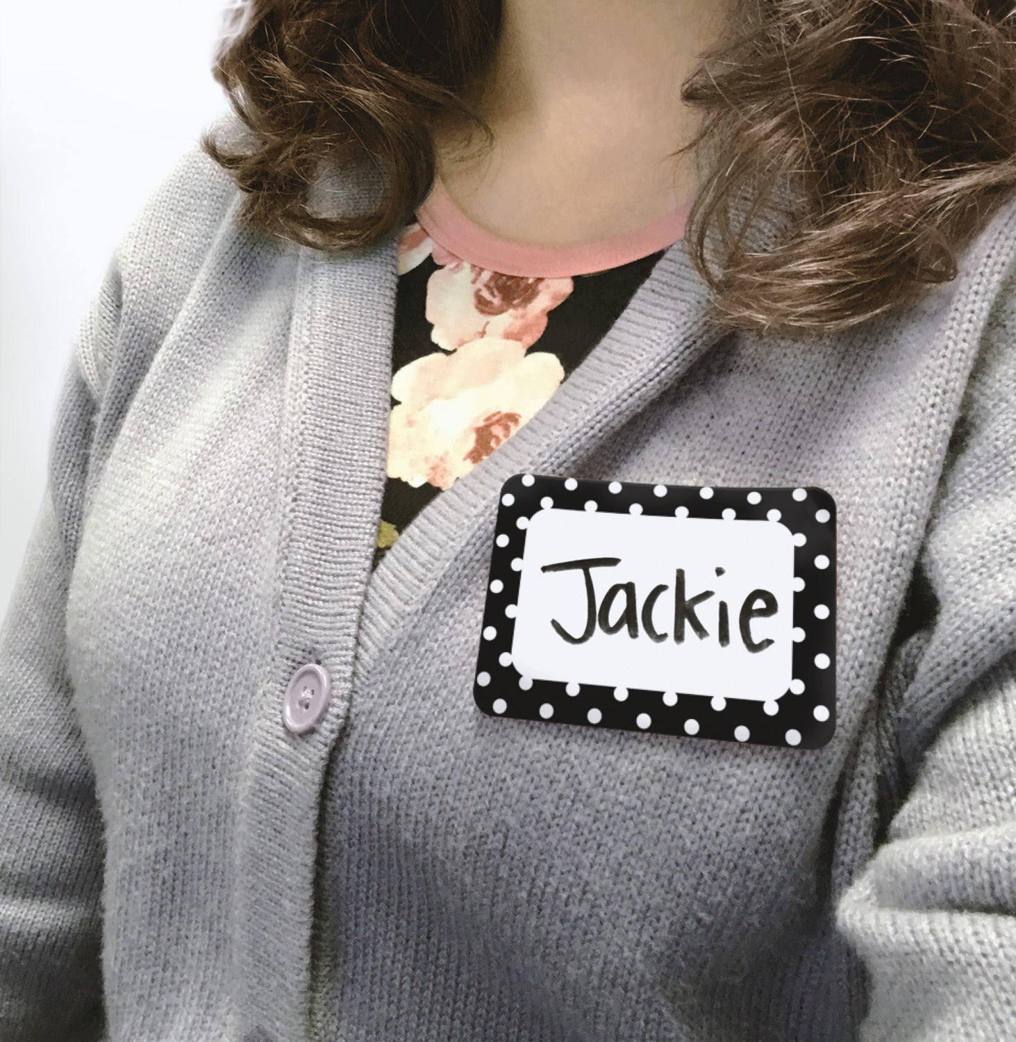 Regular price $7.99These all-new name tags/labels are bigger than ever. The larger writing space comes in handy when using them for name tags, gift tags, or labels for student portfolios or cubbies. 3 1/2" x 2 1/2". 36 per pack.