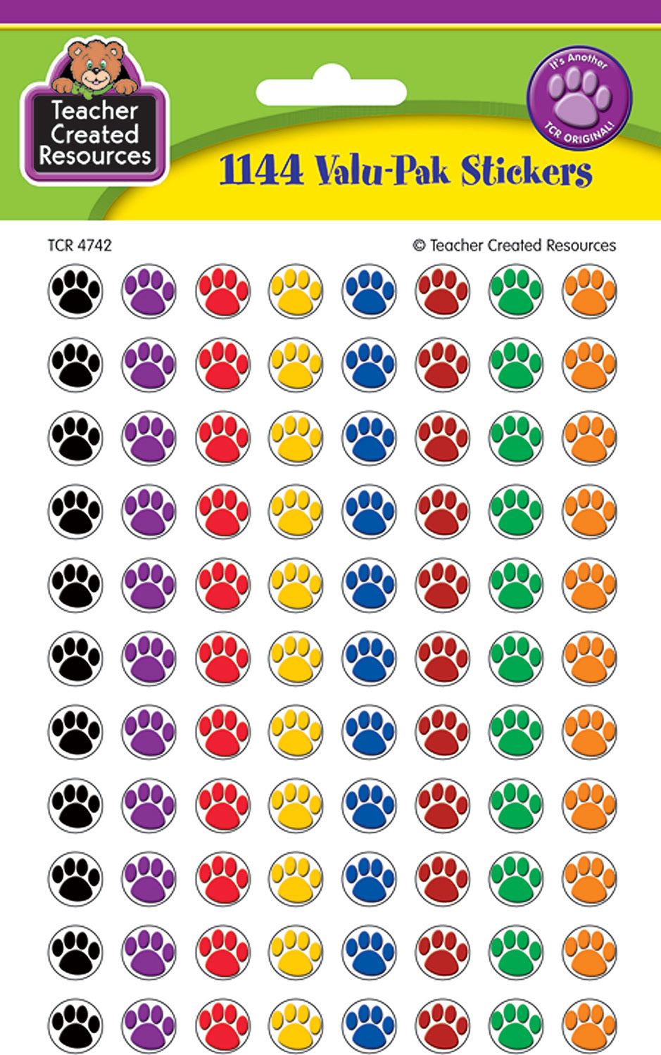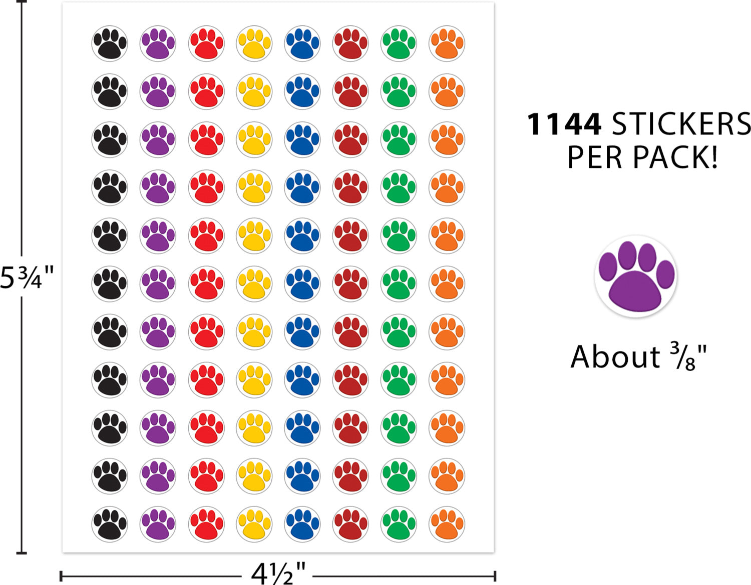 Mini Colorful Paw Prints Stickers Valu-Pak
